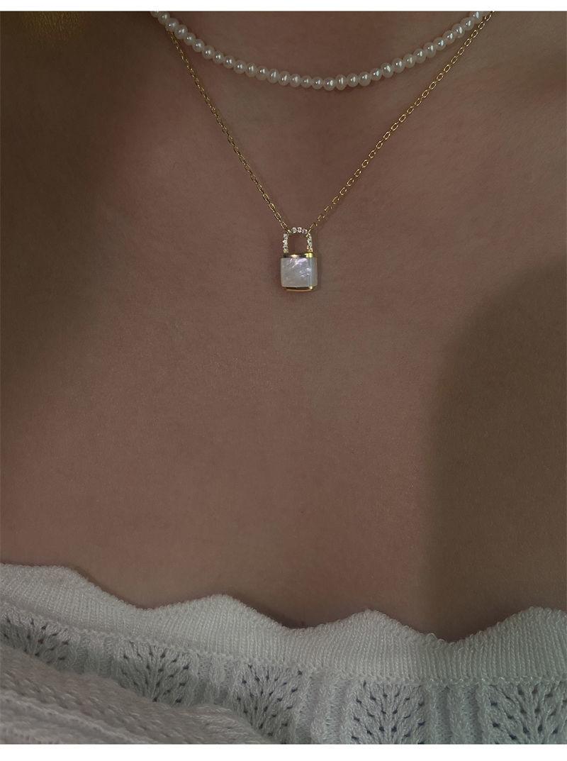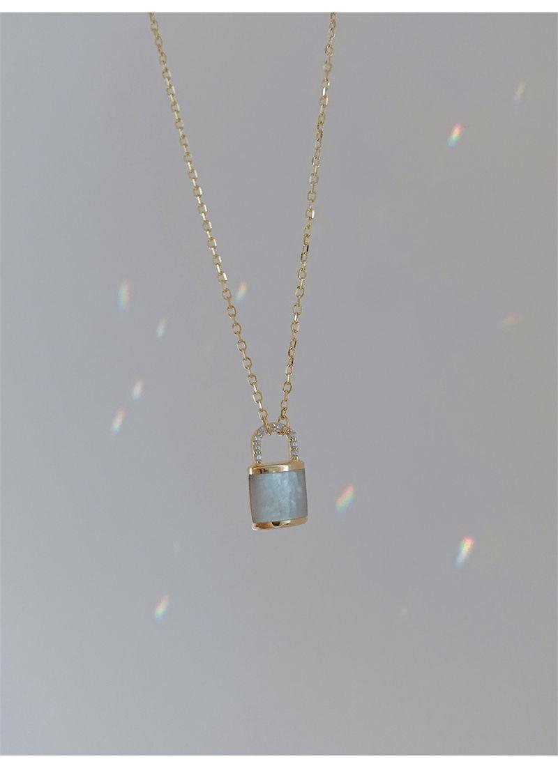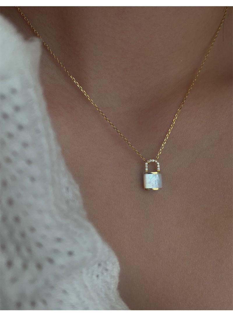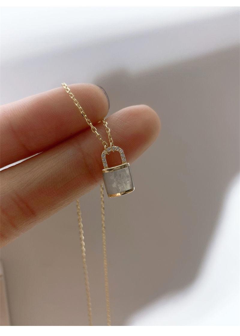 Collar de Candado Pequeño de Concha de Zircón 2021 Nuevo para Mujer Lujo Ligero Nicho Cadena Clavicular Sentido del Diseño