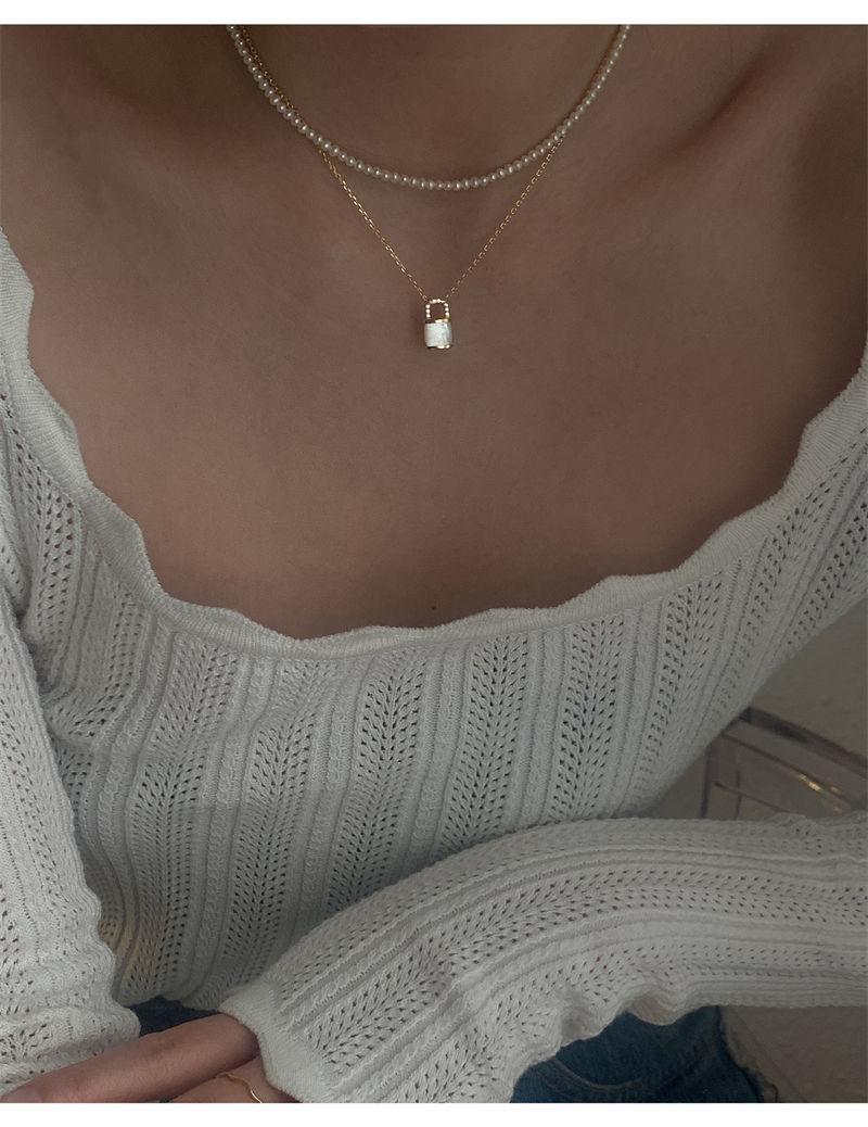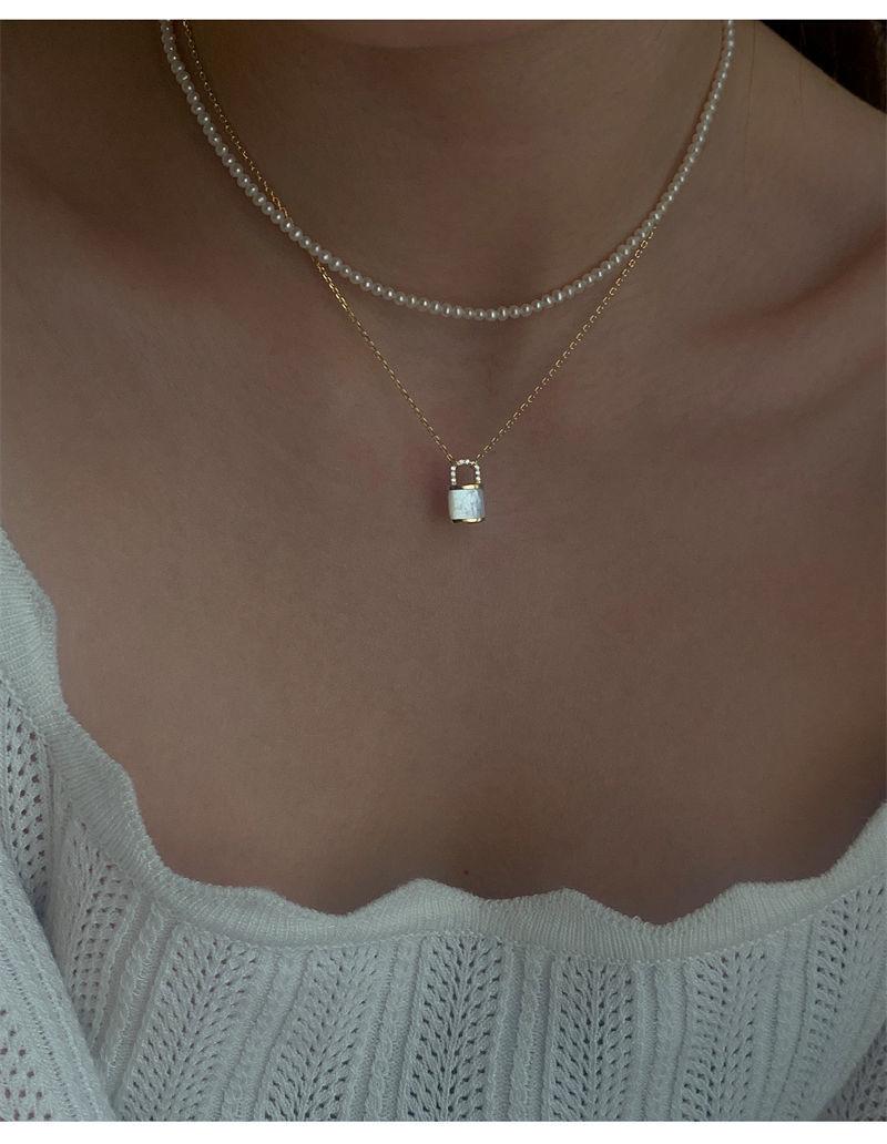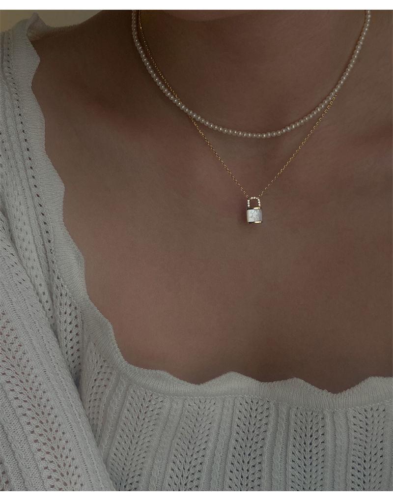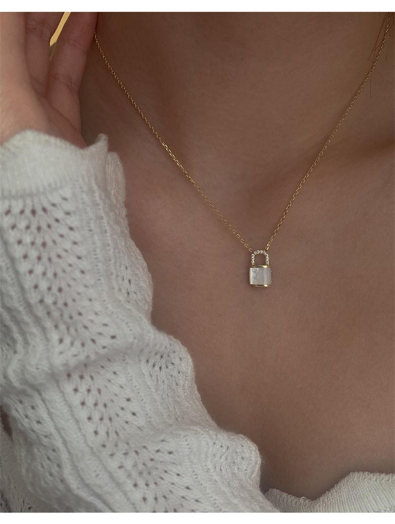 Collar de Candado Pequeño de Concha de Zircón 2021 Nuevo para Mujer Lujo Ligero Nicho Cadena Clavicular Sentido del Diseño