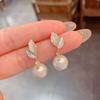 Pendientes Pequeños Frescos Micro-Incrustados de Perlas de Hoja Pendientes Coreanos Elegantes de Moda Populares Pendientes de Aguja de Plata 2023 Nuevos Pendientes de Moda