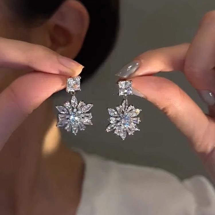 Pendientes de lujo ligeros con circonitas y diamantes, elegantes pendientes de flores con diseño de nicho que combina con todo, exquisita joyería de alta calidad con borlas.