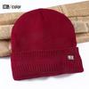 Gorro de otoño e invierno para hombre, de lana gruesa y cálida, de jacquard, de color liso, para esquí, de punto, de algodón
