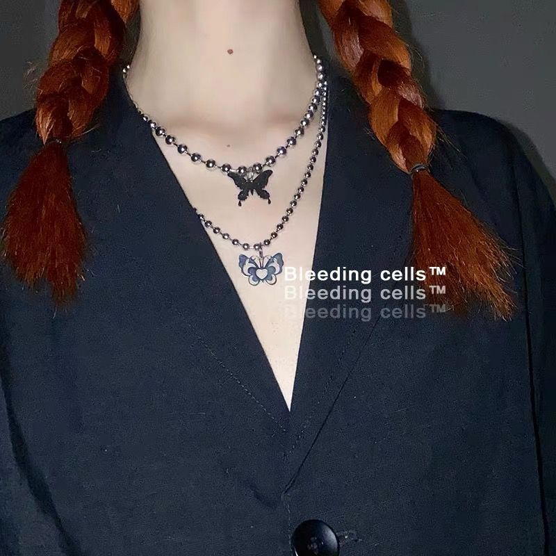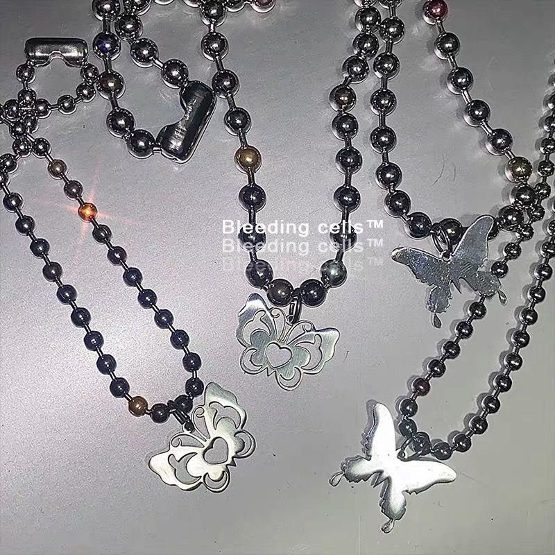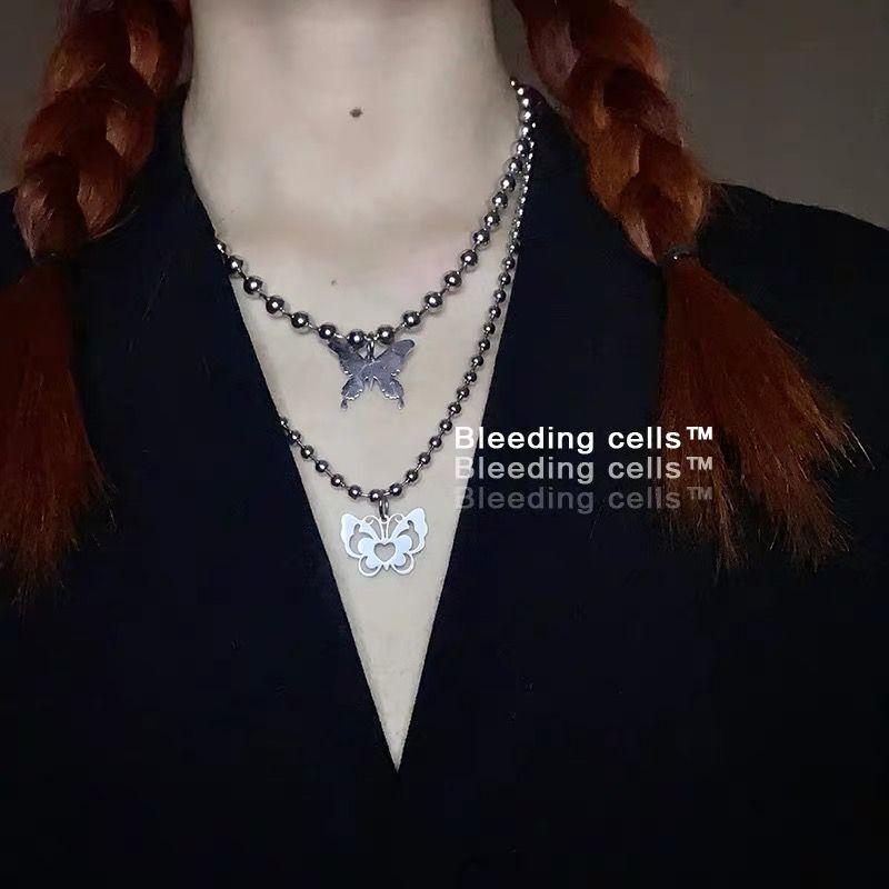 Collar de mariposa retro que no se desvanece Collar de cuentas de mariposa de acero hueco para chica cool vintage europea y americana Cadena para clavícula