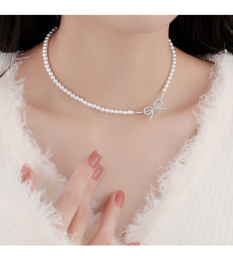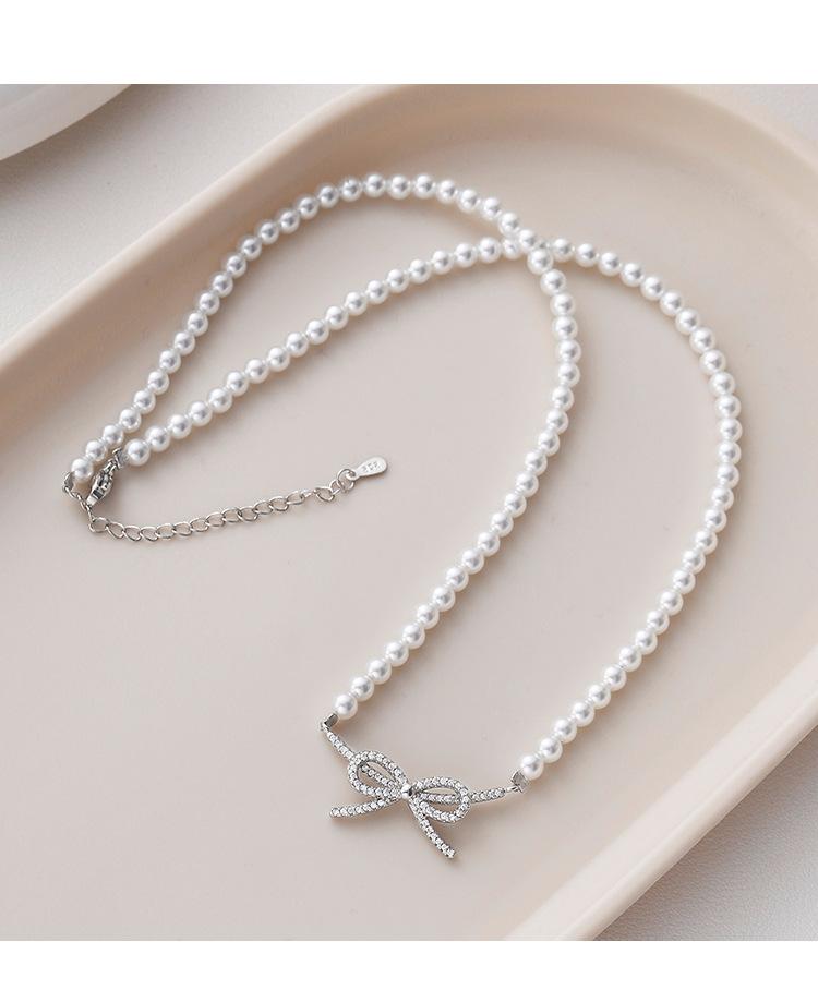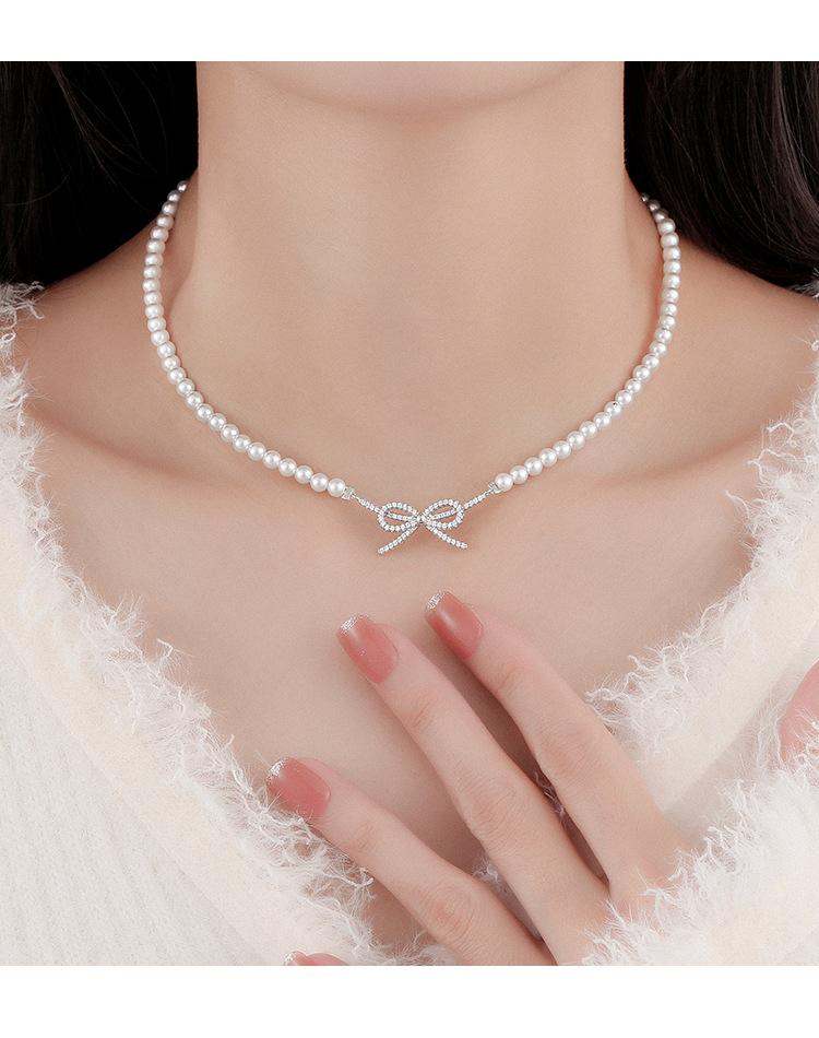 Collar con lazo de perlas, novedad de 2024, cadena de clavícula de lujo, ligero y de alta gama, accesorios para mujer.