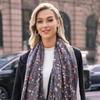 Chal de Borlas de Cachemira Imitación Nuevo Otoño e Invierno 2025 Estampado de Rosas Fresco y Dulce Bufanda Cálida Venta al por Mayor