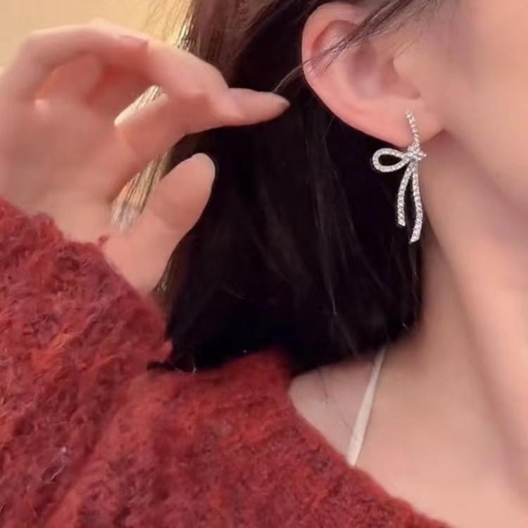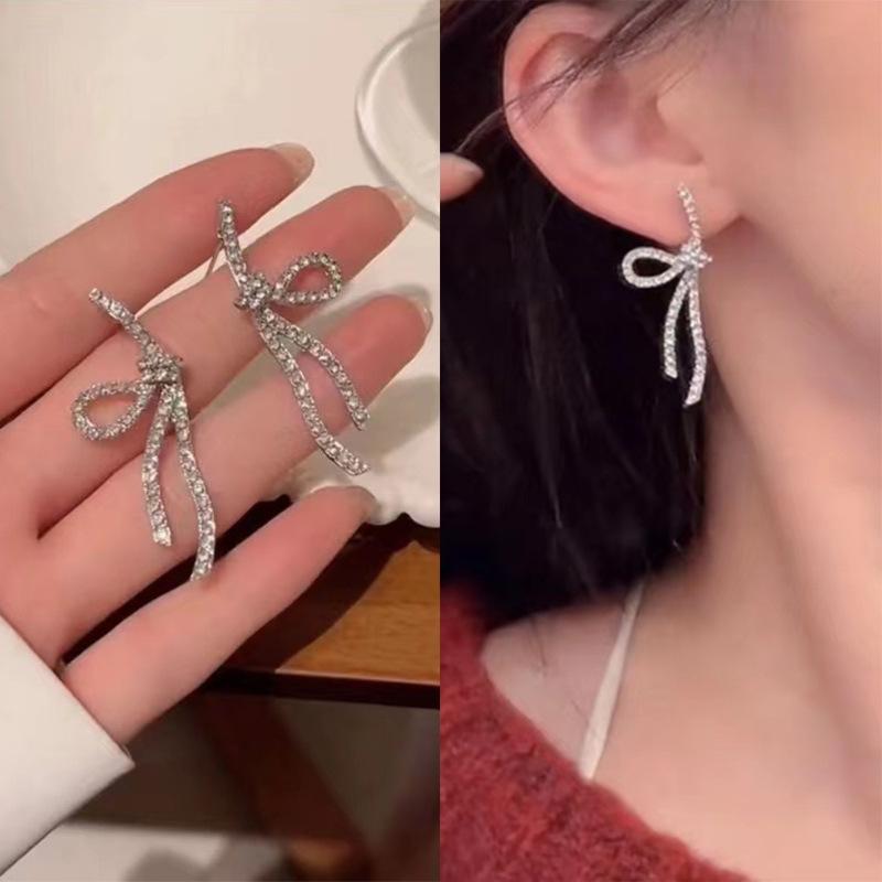 Pendientes de Borla con Lazo de Circonia de Moda, Estilo Caliente, Pendientes Únicos y de Alta Gama para Mujer, Lujo Ligero, Pendientes Versátiles