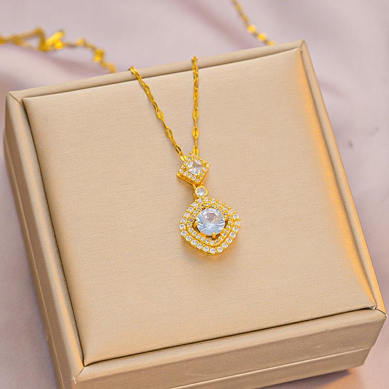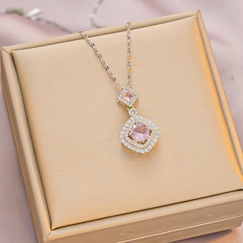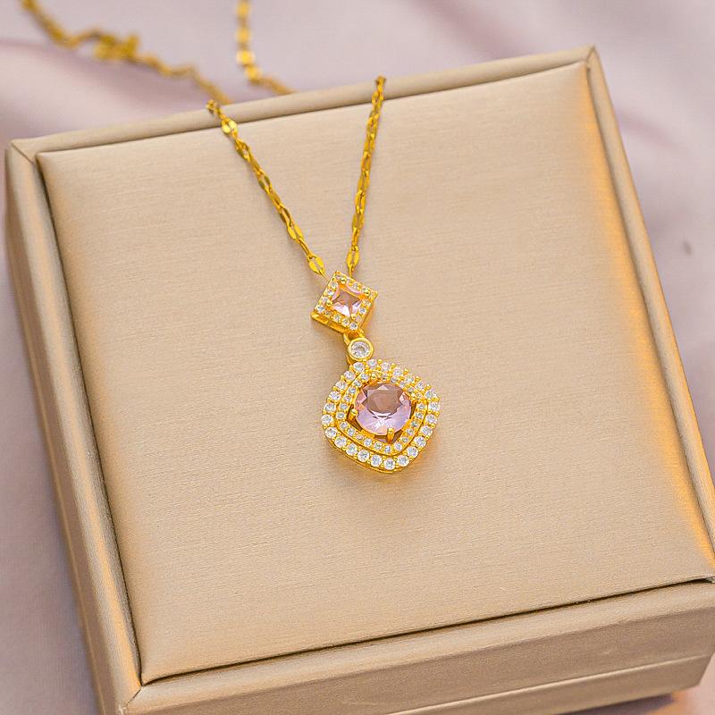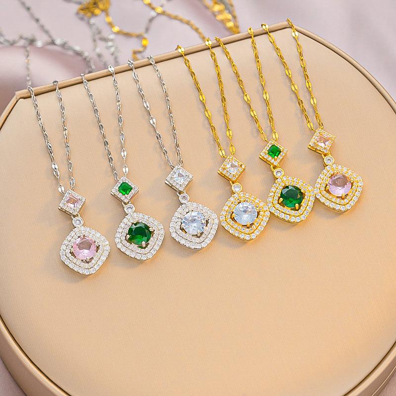 Colgante multicolor de abuela con microincrustaciones de diamantes, estilo coreano, de alta calidad, exquisito, de acero de titanio, cadena de clavícula, joyería al por mayor