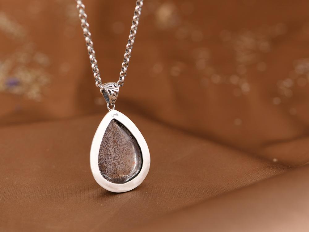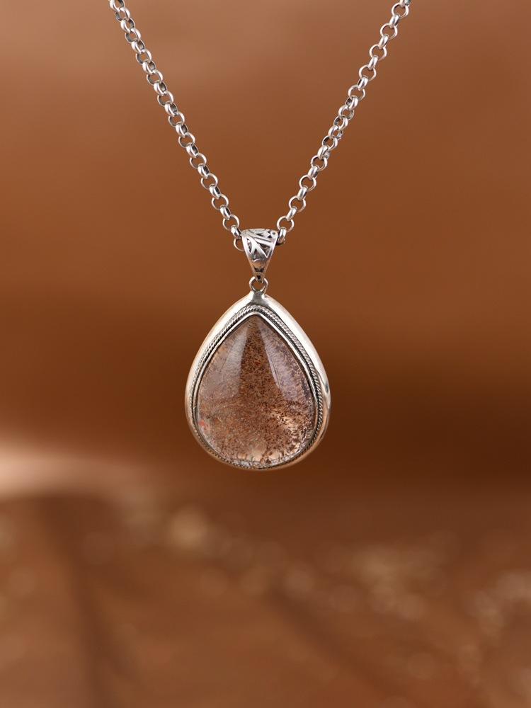 Colgante de plata S925 con diseño antiguo y sencillo de Golden Deer King, con forma de gota de agua y cristal verde fantasma, accesorios para mujer.