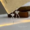 Novos Brincos de Fita de Arco s925 Corpo de Prata Esterlina Brincos Pendurados Dianteiros e Traseiros Doces Brincos de Princesa Fofos