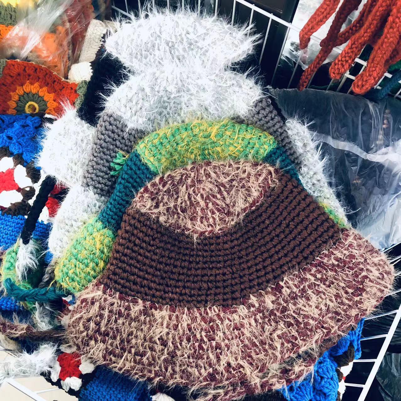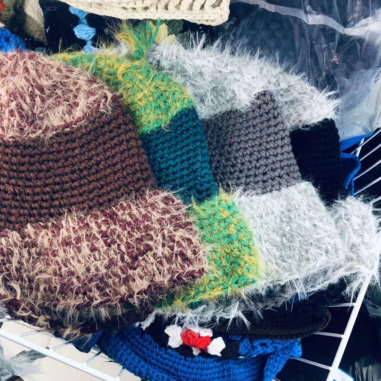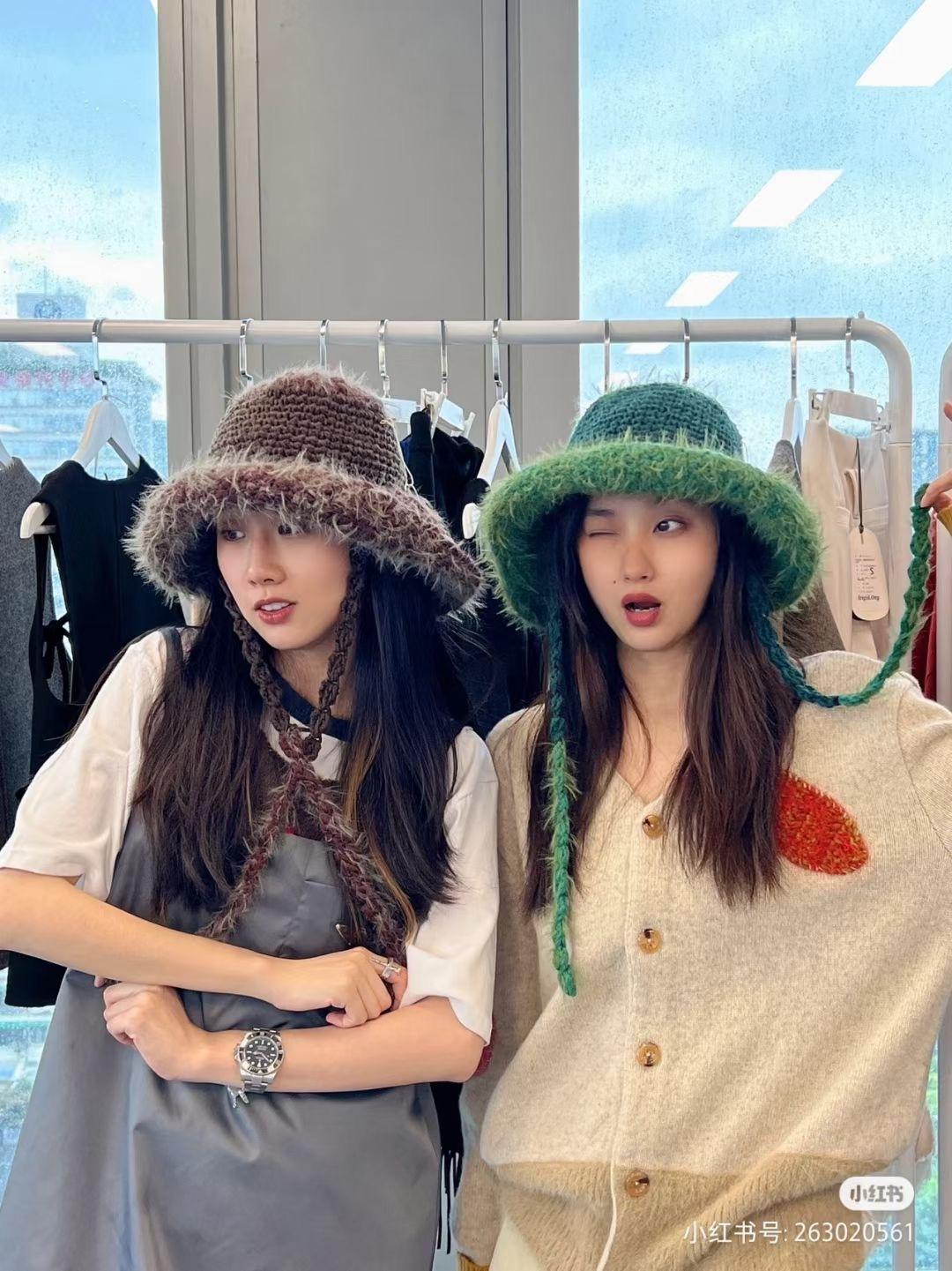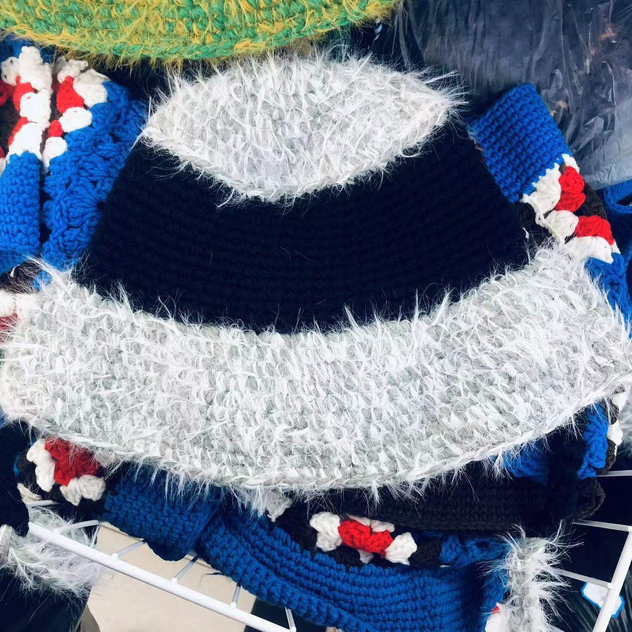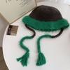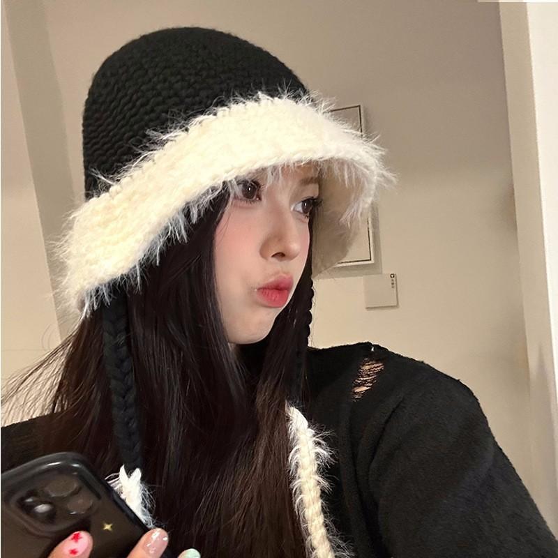 2023 nuevo diseñador nicho surcoreano hecho a mano mohair costura sombrero de pescador sombrero de lana sombrero de cubeta bicolor