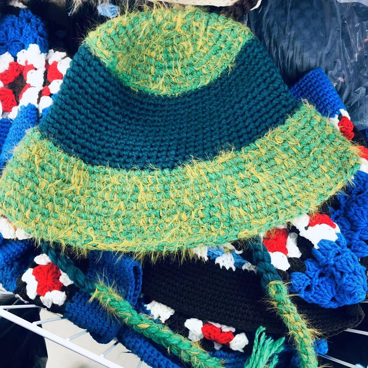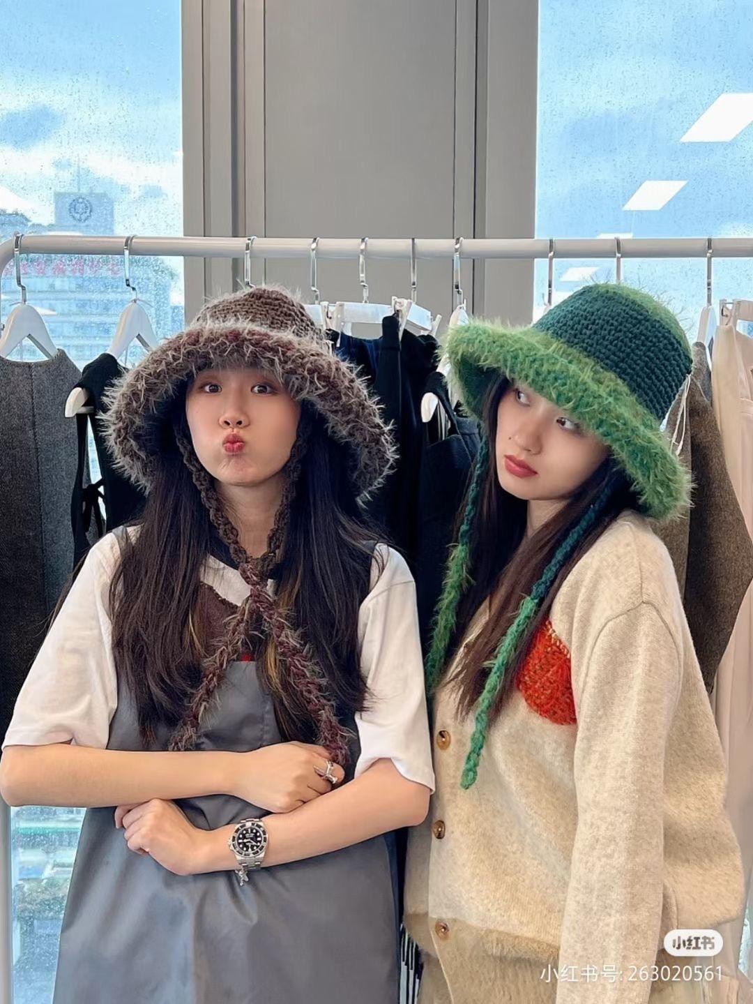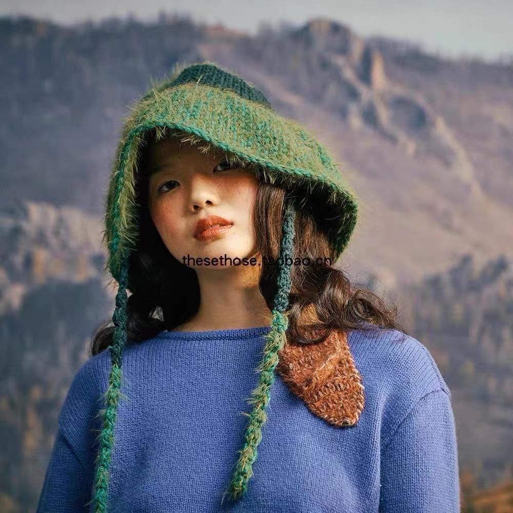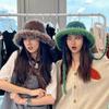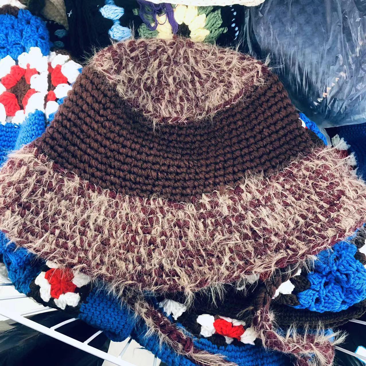 2023 nuevo diseñador nicho surcoreano hecho a mano mohair costura sombrero de pescador sombrero de lana sombrero de cubeta bicolor