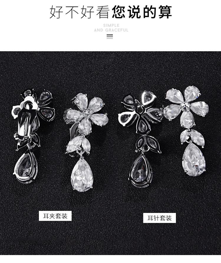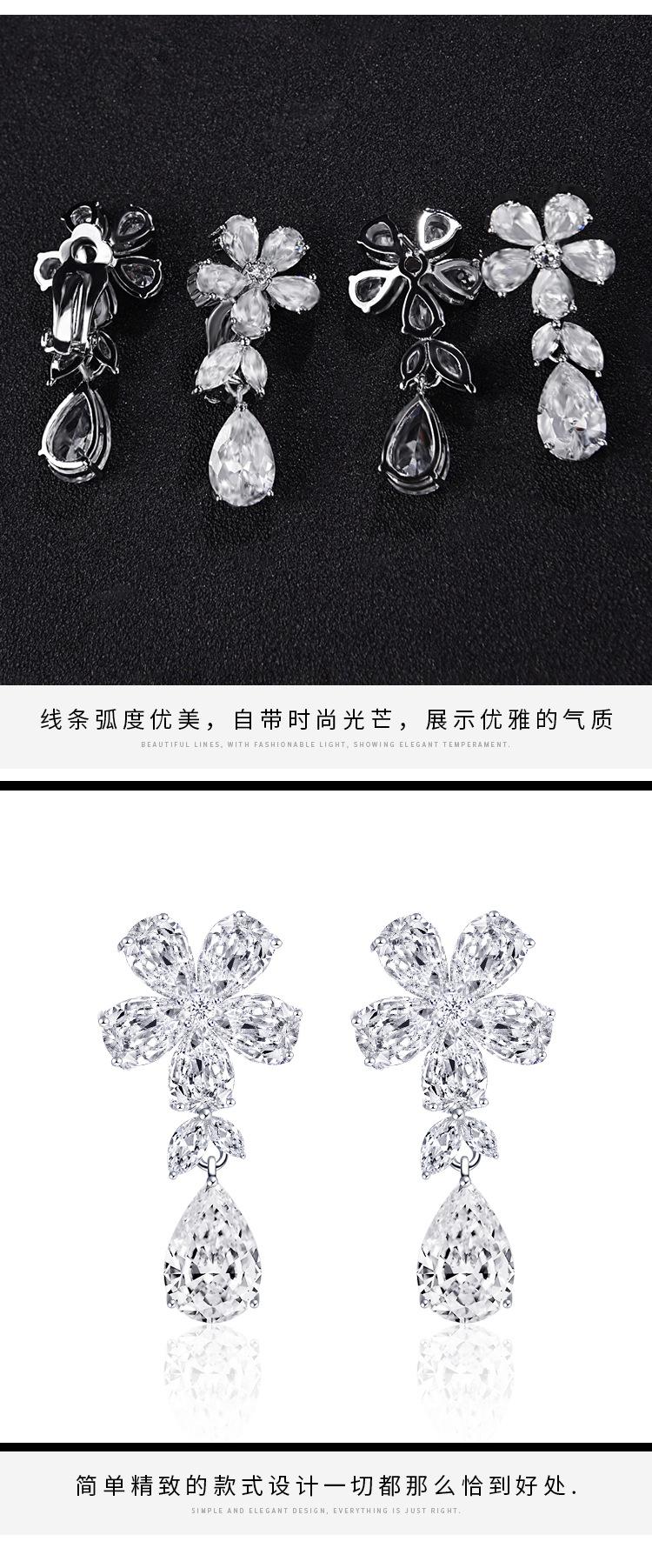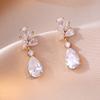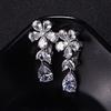 Pendientes de borla con forma de flor de circón transfronterizo, con gotas de agua, largos y versátiles, para novias y viajeros.
