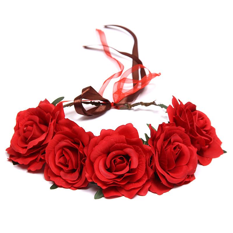 5 rosas artificiales grandes guirnalda de cinta de vid