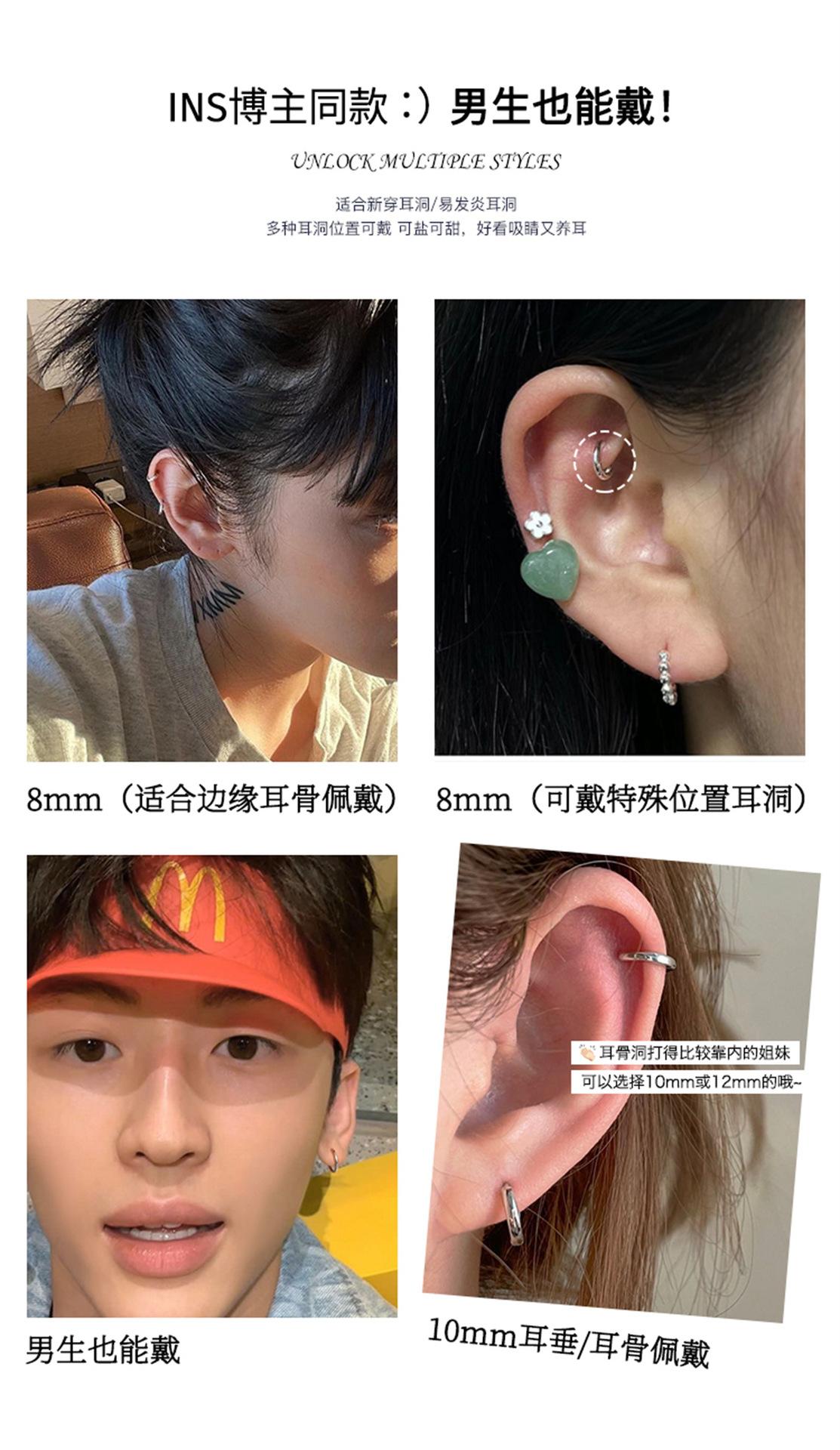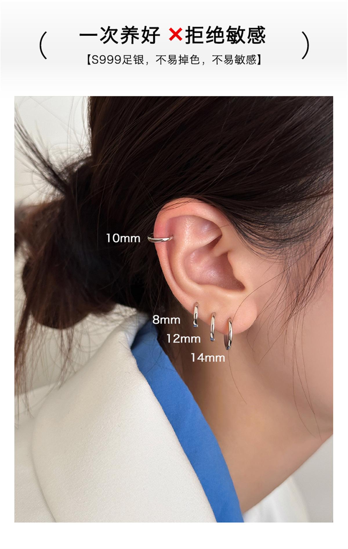 Pendientes de aro lisos de plata esterlina con diseño de nicho, piercing para la oreja sexy, sencillos, de alta calidad, estilo frío, joyería de plata pura para las orejas