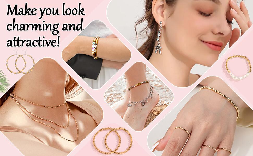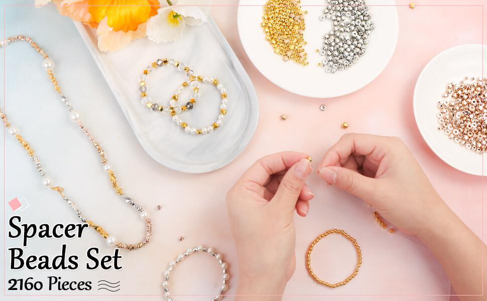 2160 piezas de cuentas espaciadoras doradas que se adaptan a varias pulseras, cuentas redondas, cuentas de estrella, cuentas doradas para la fabricación de joyas de pulseras