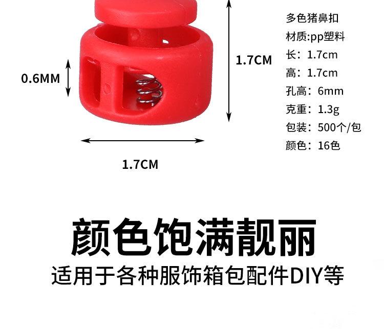 Hebilla de nariz de cerdo de plástico de colores de 500, hebilla de cuerda elástica de doble agujero, hebilla de cuerda tipo hongo, hebilla redonda con ajuste de resorte