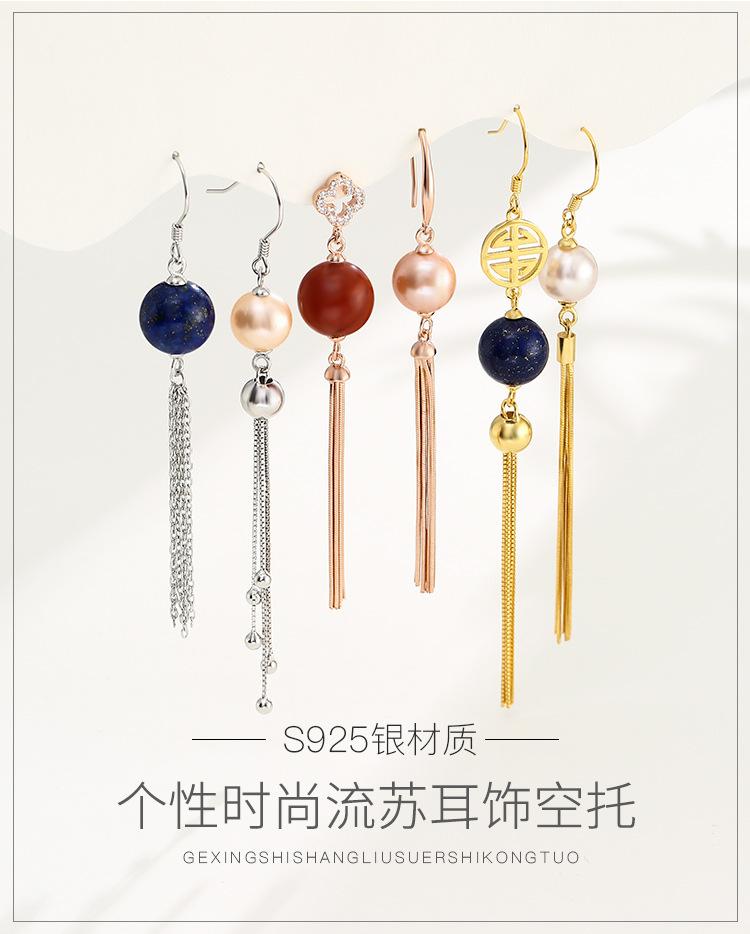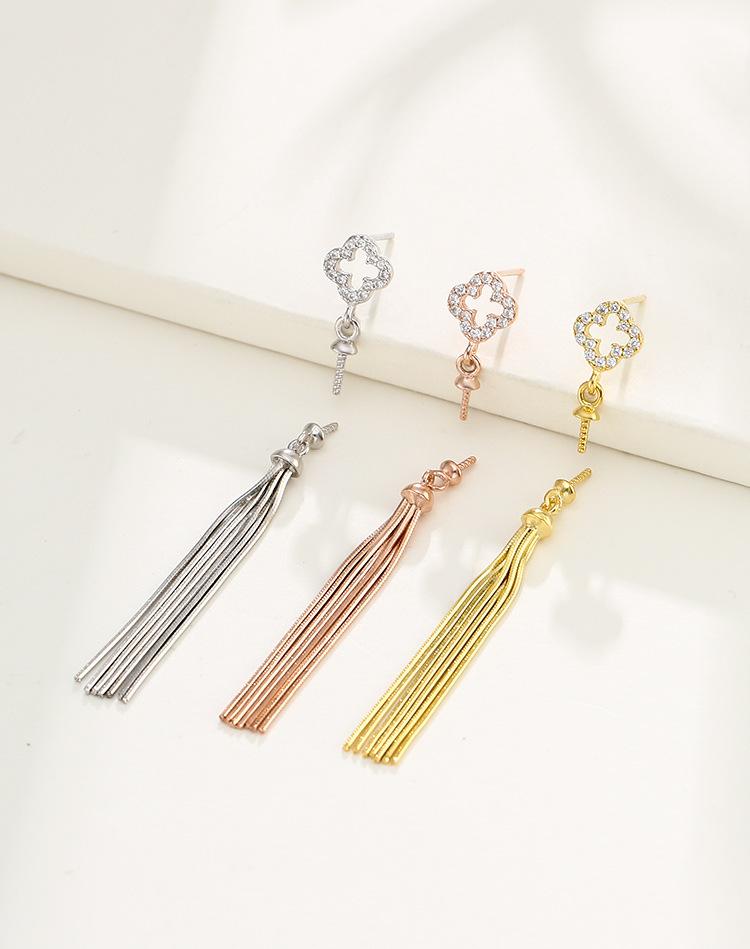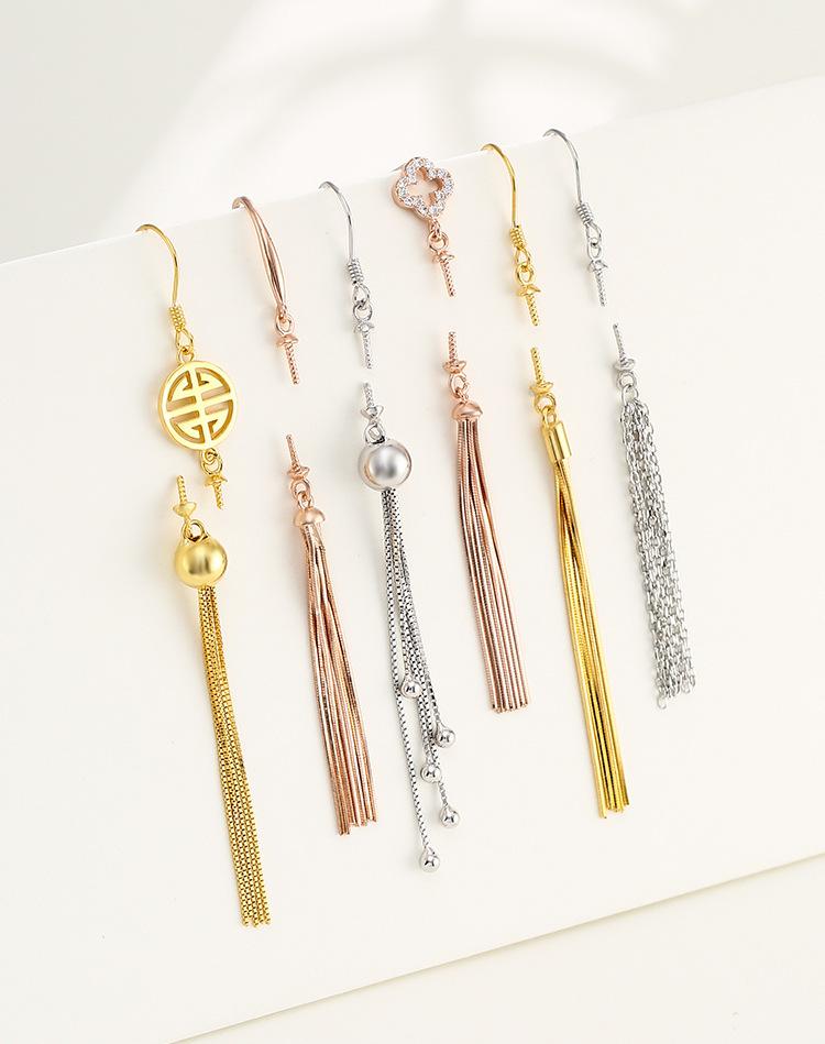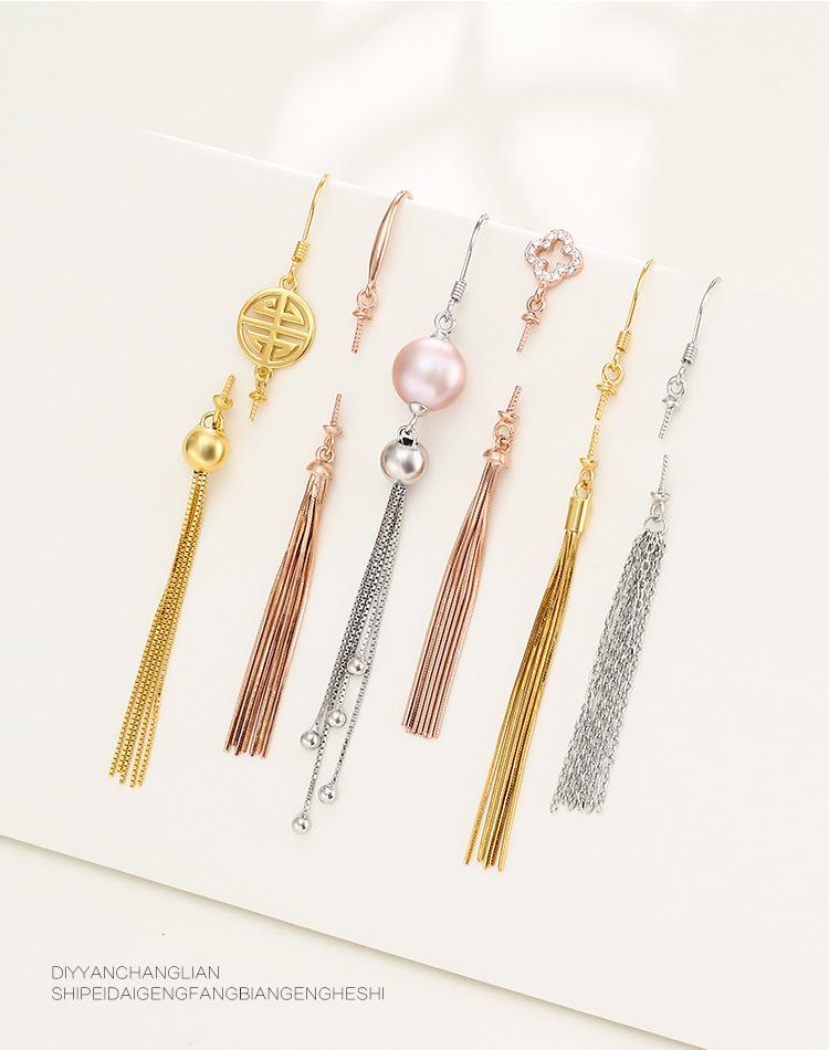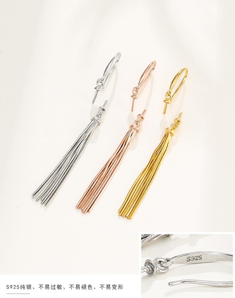 Accesorios para Aretes de Plata Esterlina S925 Soporte Vacío para Mujeres Hecho a Mano DIY Aretes de Borla de Perlas Alambre para Oreja Gancho para Oreja Paquete de Material