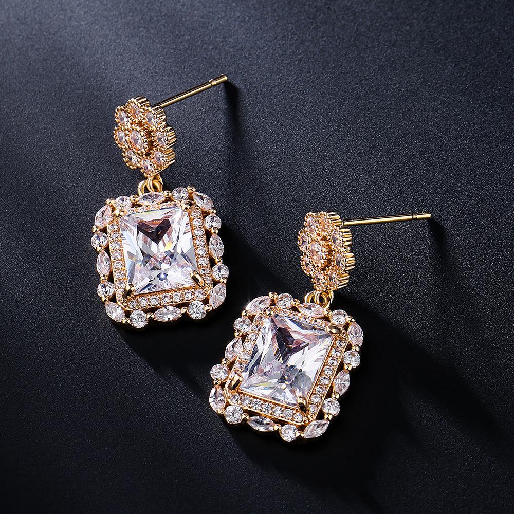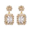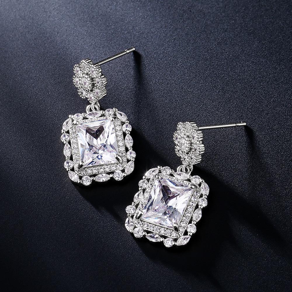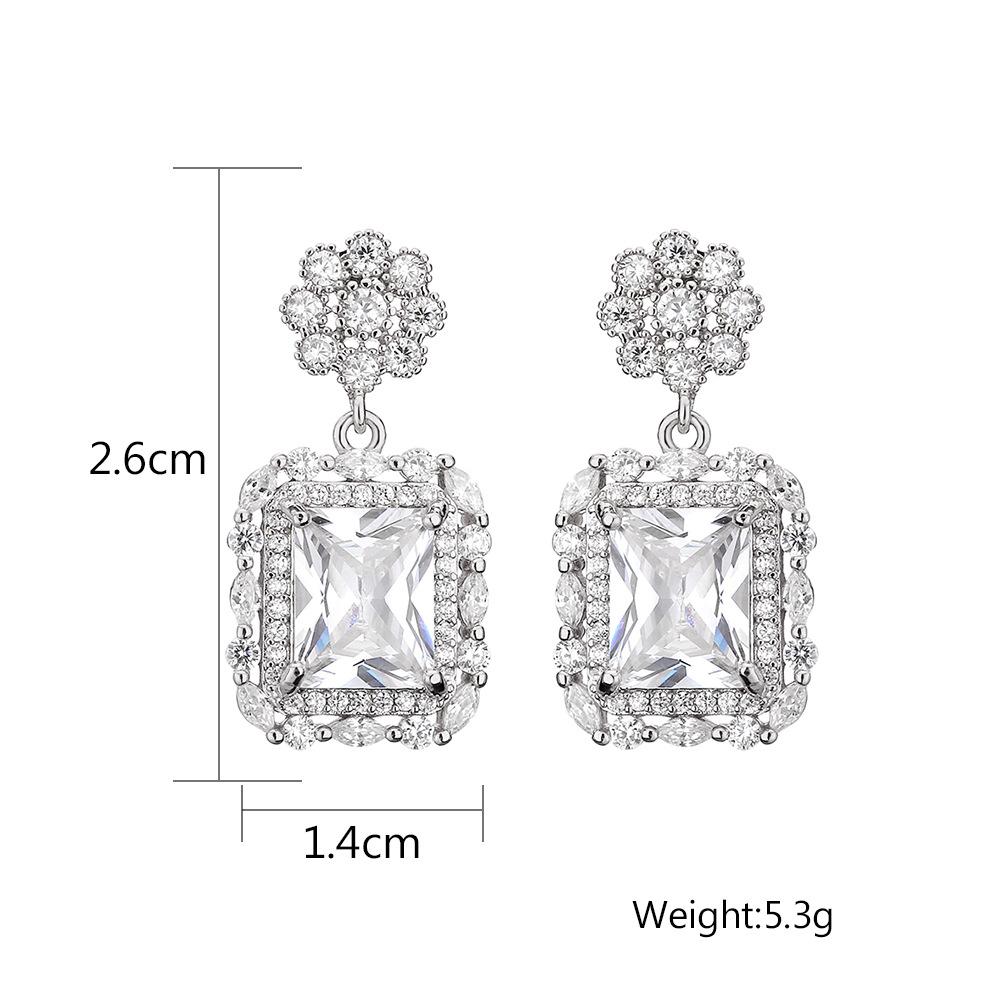 RAKOL - Pendientes de flores de encaje, pequeños, frescos y exquisitos, de estilo coreano, clásicos, retro, geométricos, con circón cuadrado