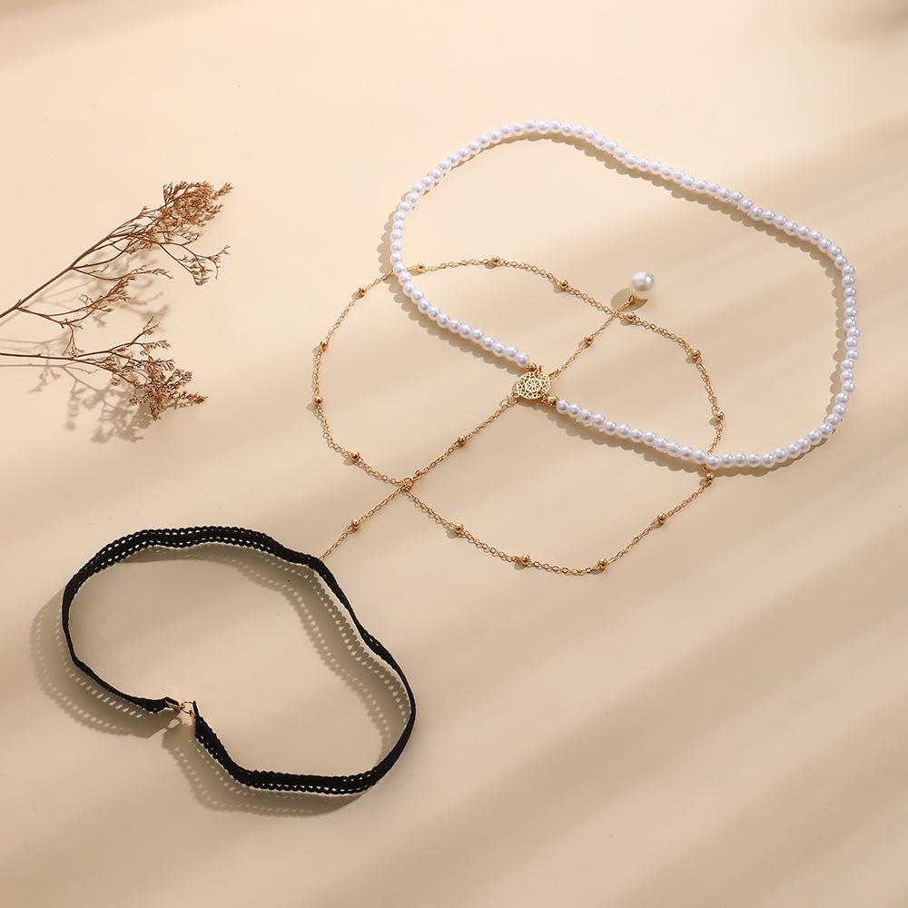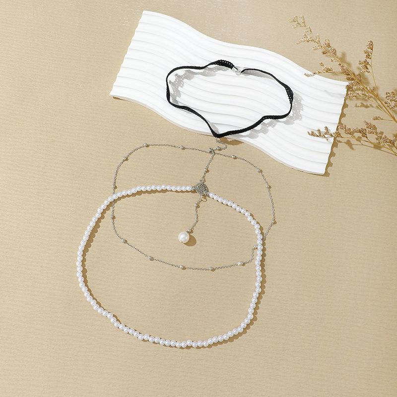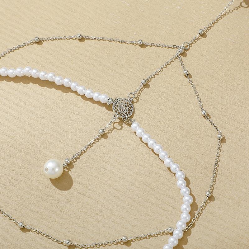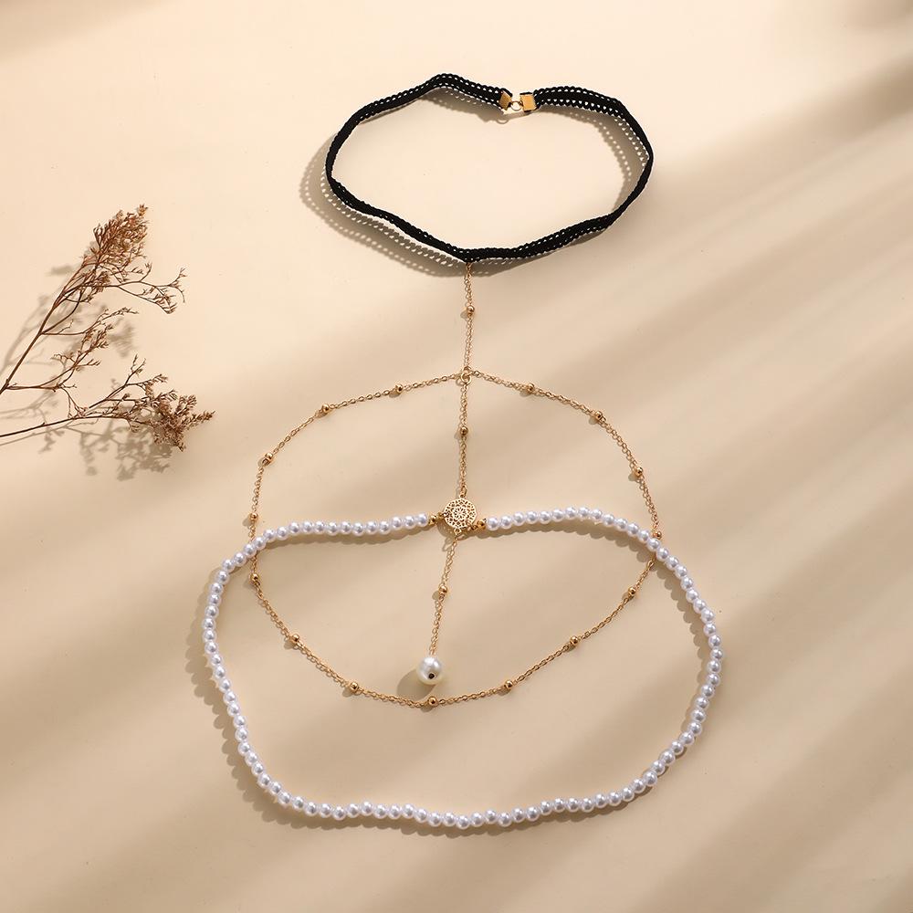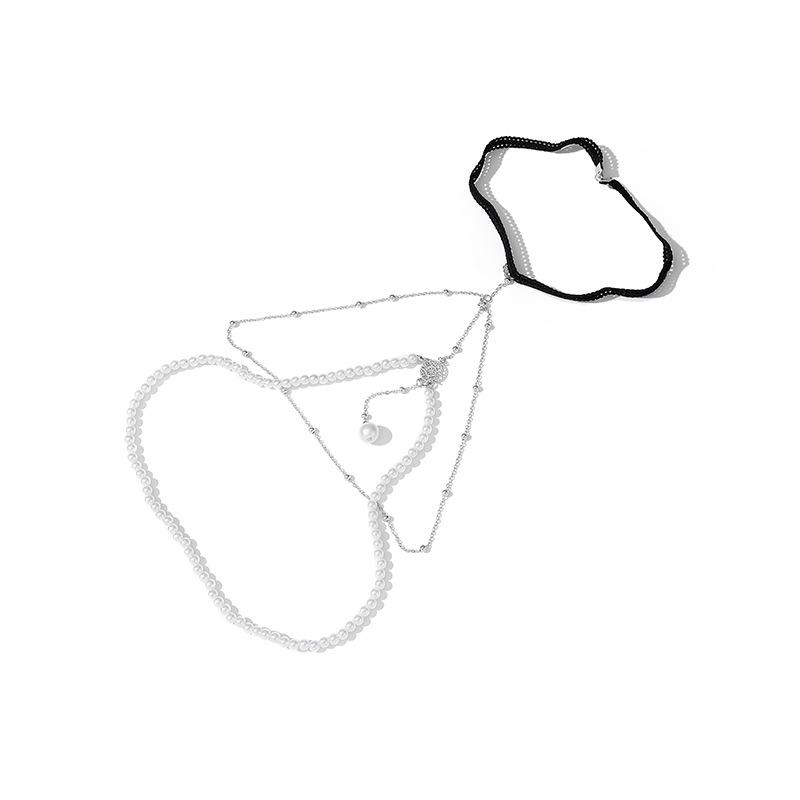 Cadena de Pierna de Perlas Simple Exagerada Multicapa Transfronteriza Europea y Americana para Mujeres Ins Creativa Elegante Larga Joyería de Cadena para el Cuerpo