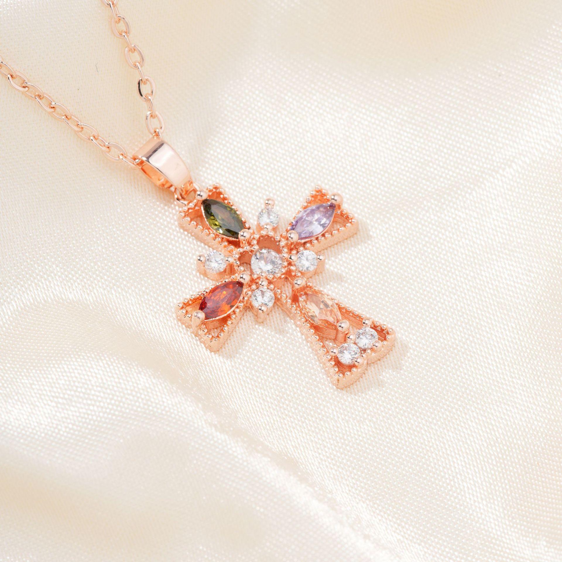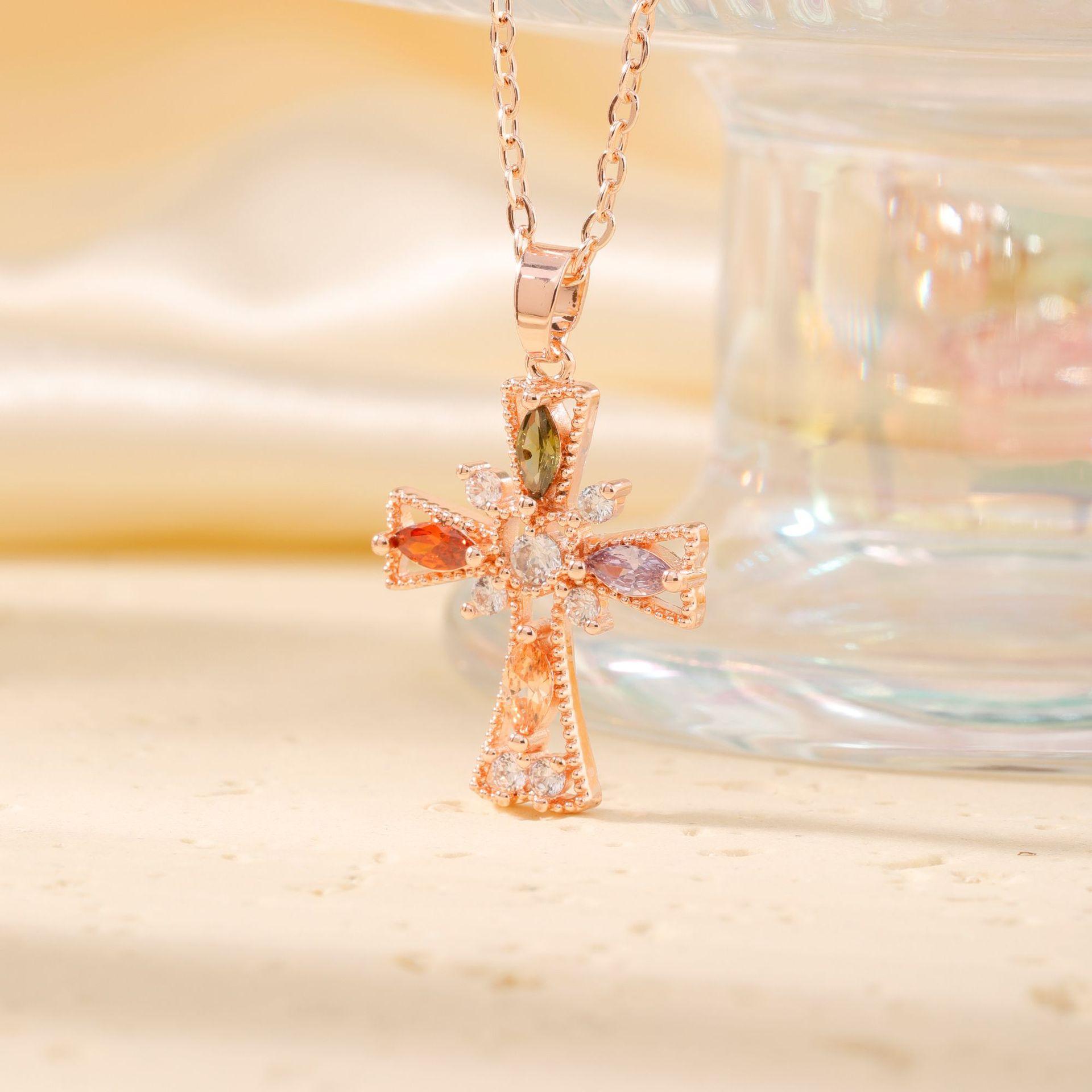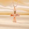 Collar con colgante de cruz rosa y circonita de moda creativa con personalidad, joyería transfronteriza de Europa y Estados Unidos, cadena de suéter Joker al por mayor