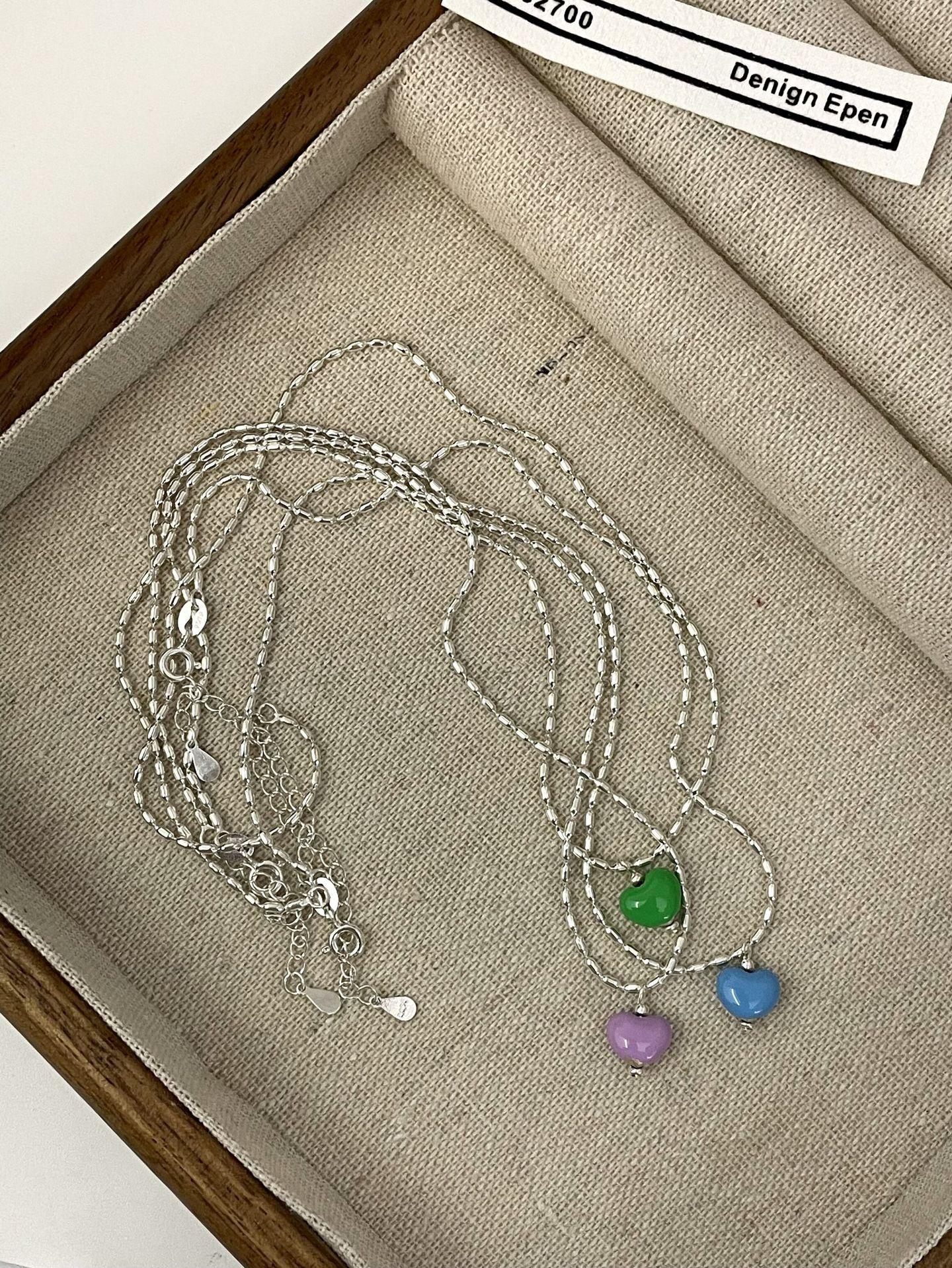 Collar de plata esterlina con cuentas de arroz de oliva cortas, estilo coreano Dongdaemun, epoxi, plata brillante, s925
