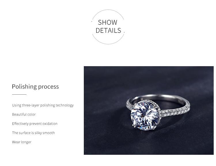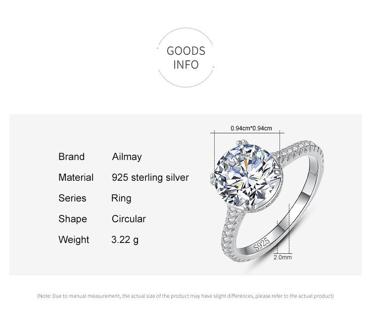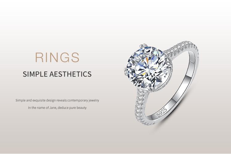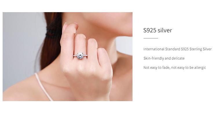 Anillo de plata esterlina s925 para mujer, moda europea y americana, anillo de diamantes de imitación de 2 quilates con cuatro garras transfronterizas, joyería de mano ligera de lujo de alta gama.