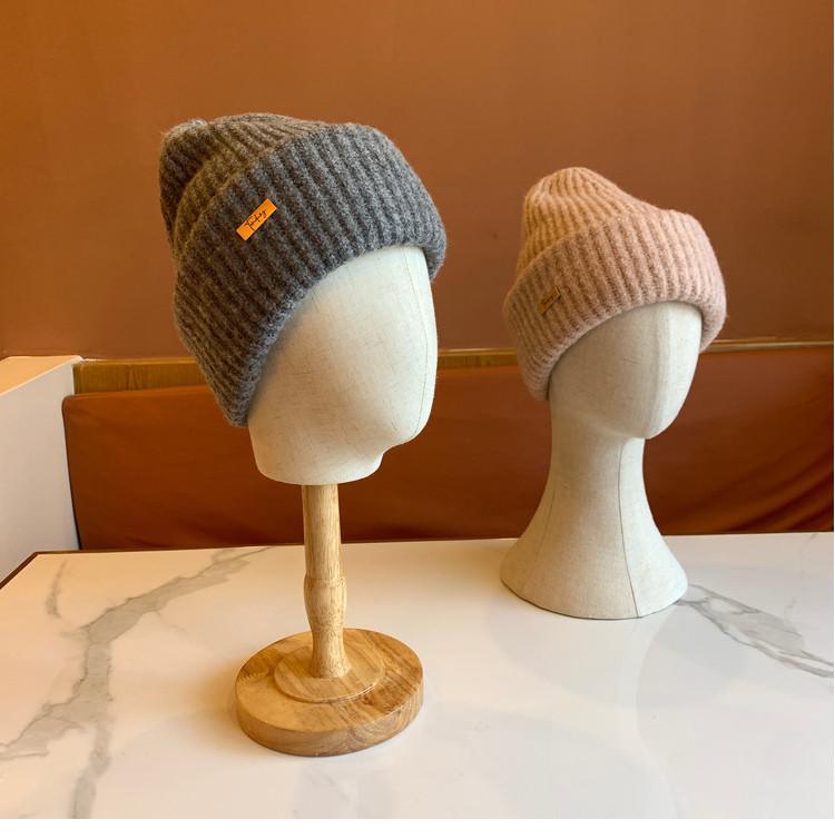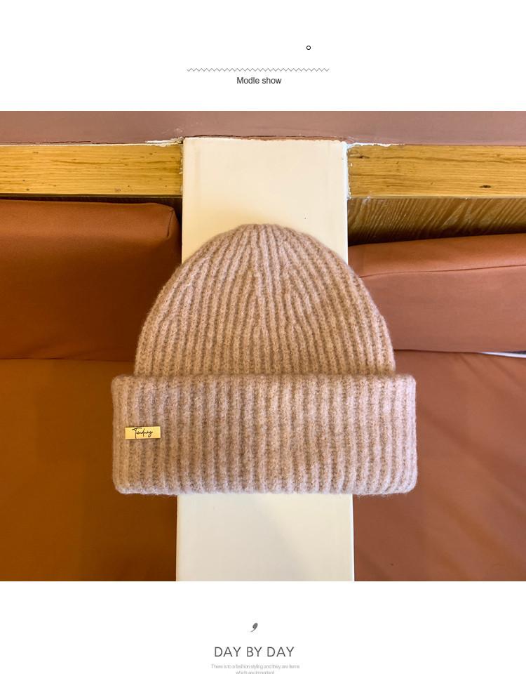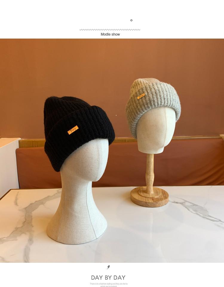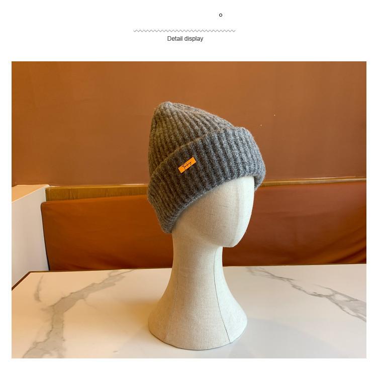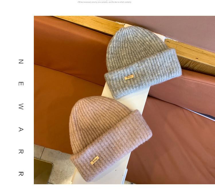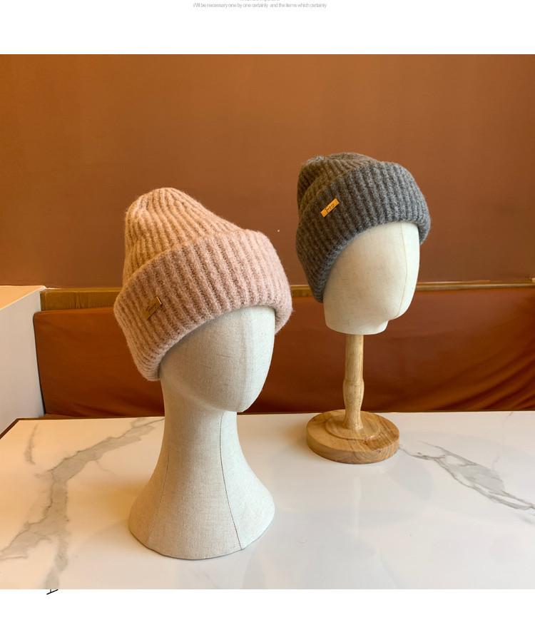 Sombrero Sombrero de Lana para Mujer Sombrero Pulóver de Moda Versátil Cálido Sombrero de Punto con Pequeña Marca de Hierro para Estudiantes Varones Compras
