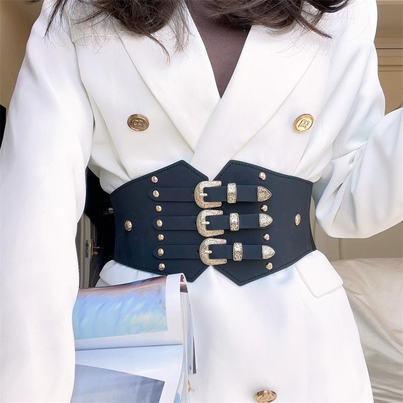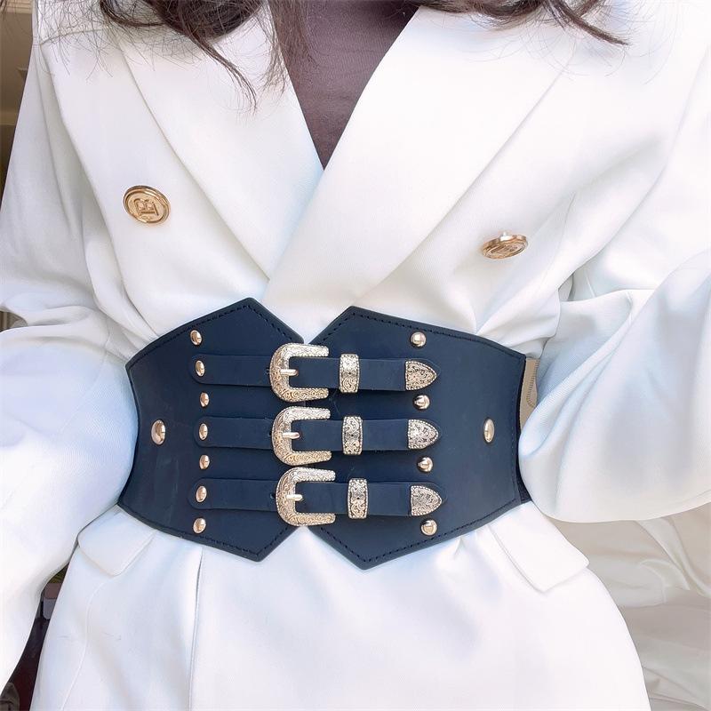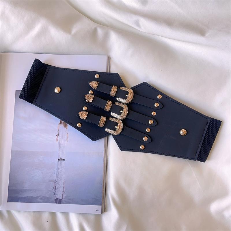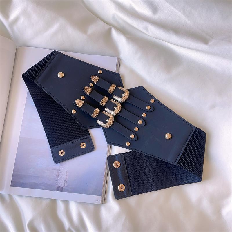 Cinturón decorativo para mujer, estilo europeo y americano, con cintura elástica retro de tres botones, combina con todo, venta transfronteriza