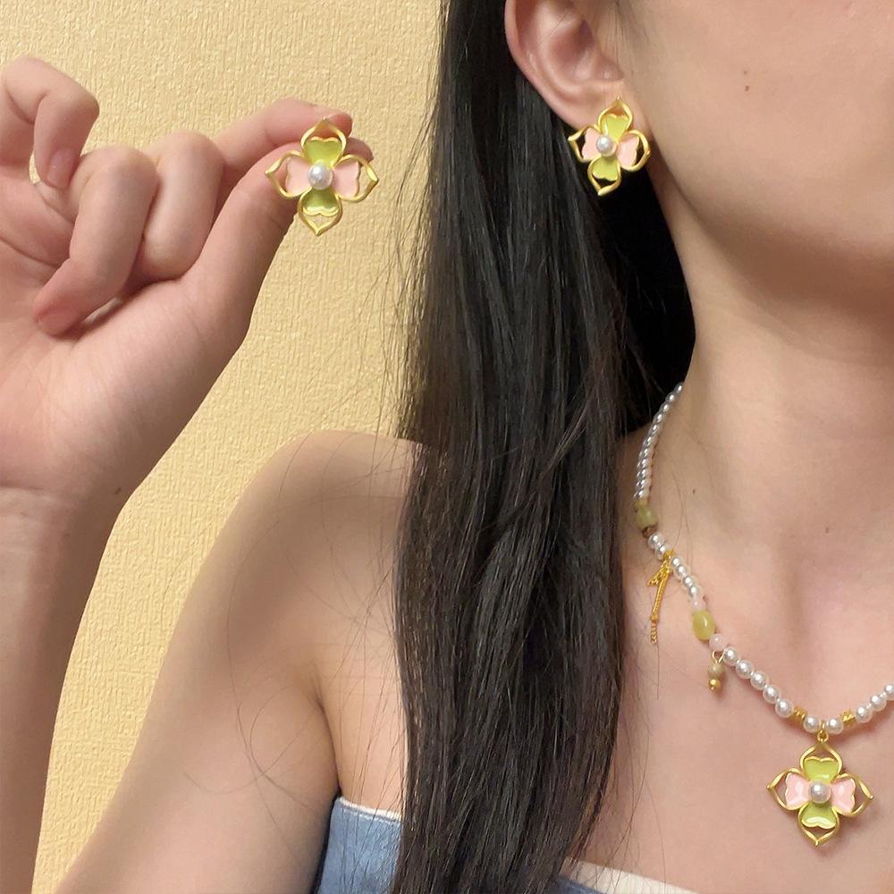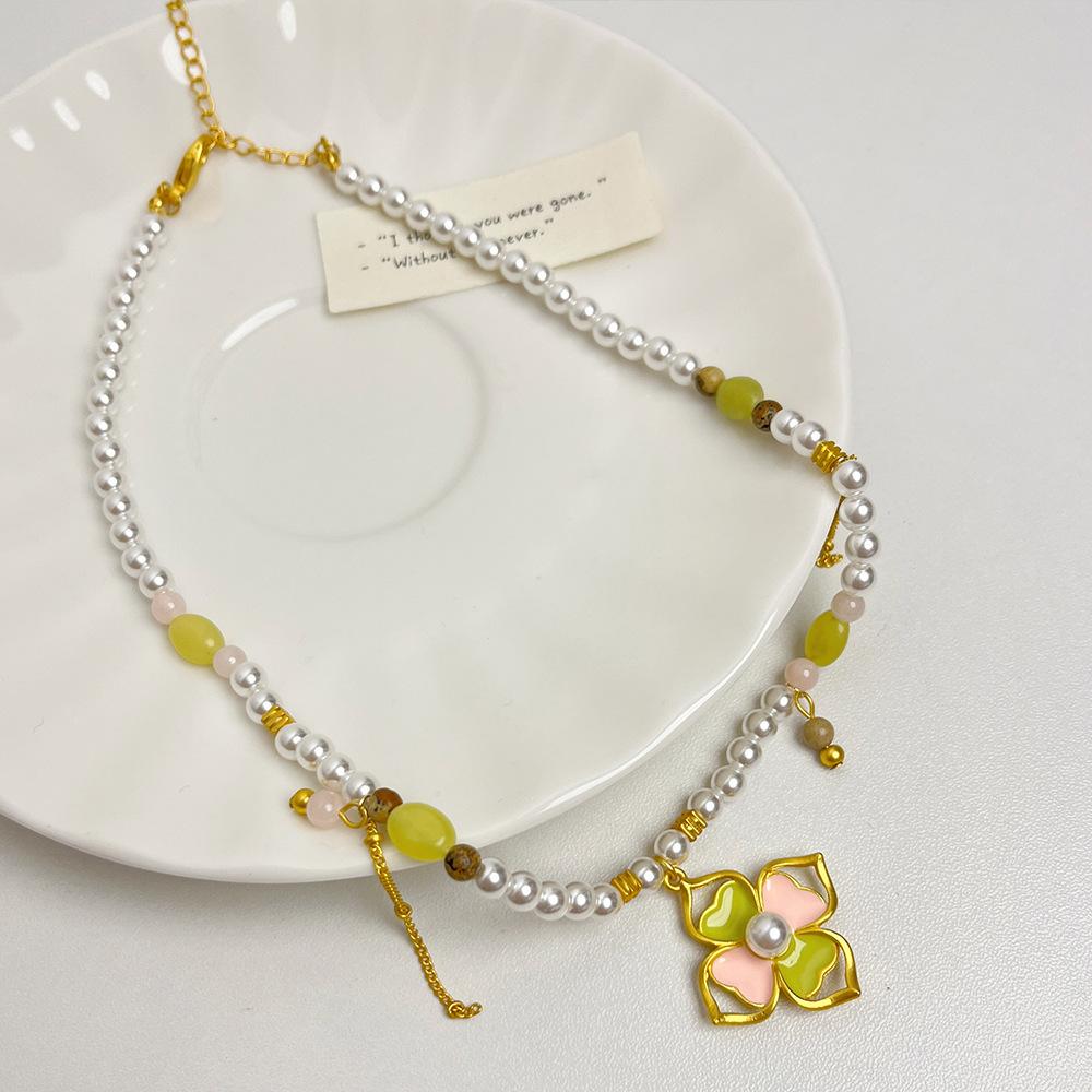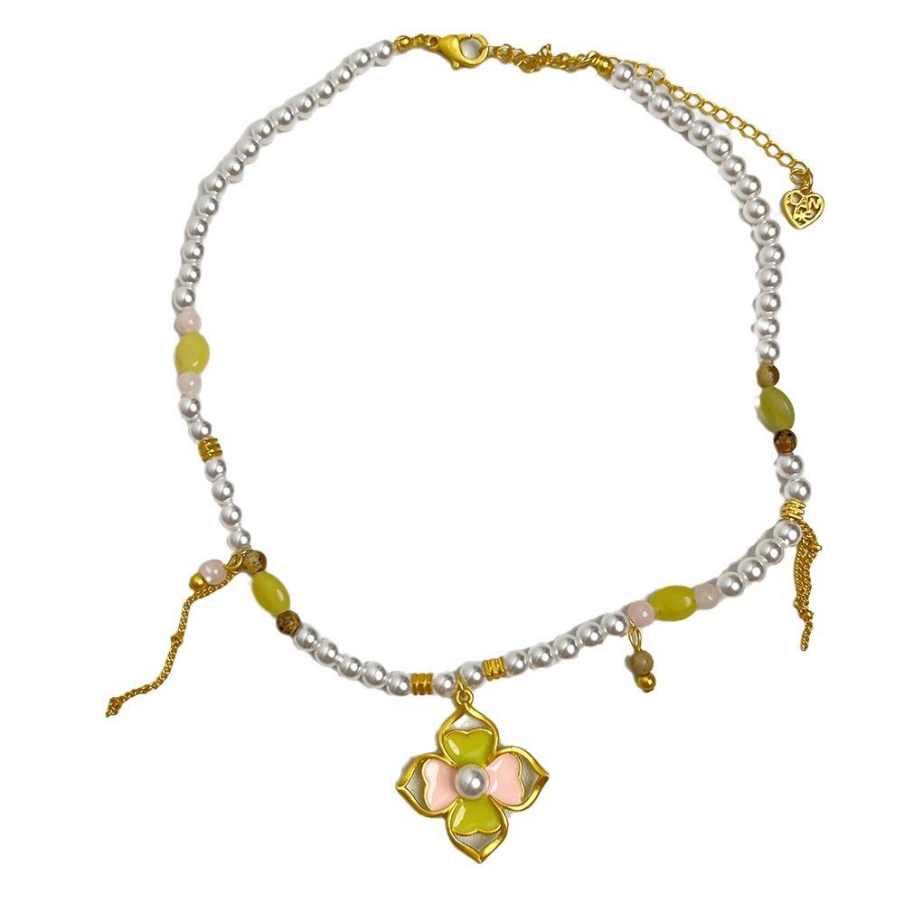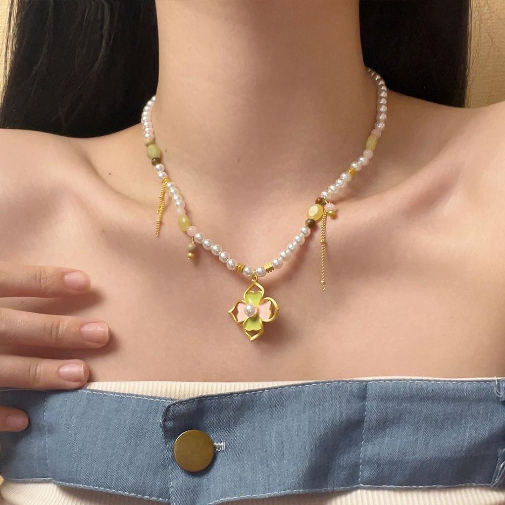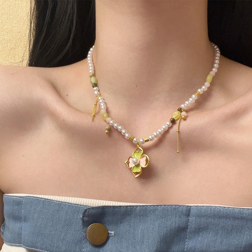 Nuevo collar y pendientes con cuentas de cristal de color chino, estilo Y2K, con cadena de clavícula de dopamina.
