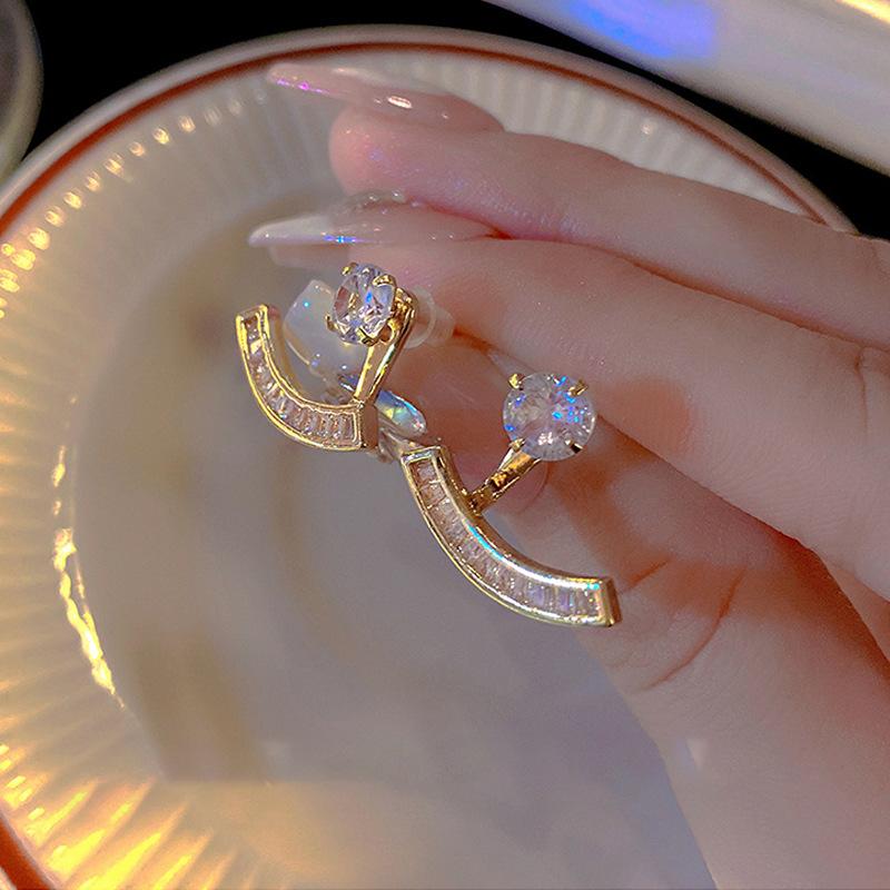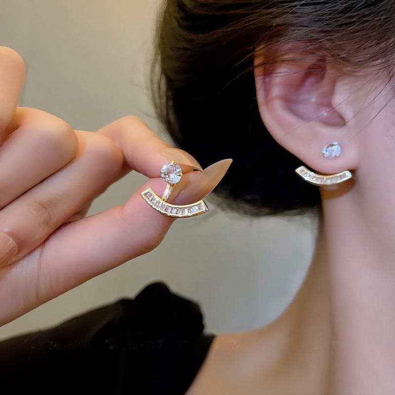Pendientes de circonita geométrica simple para mujer, diseño de nicho de moda, elegantes y combinables, 2023
