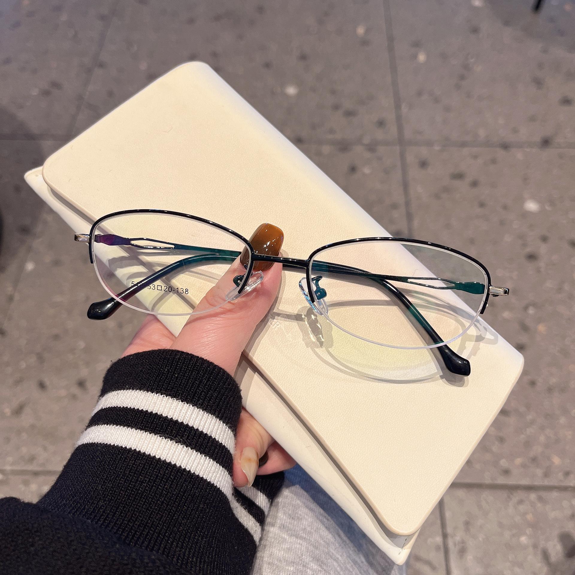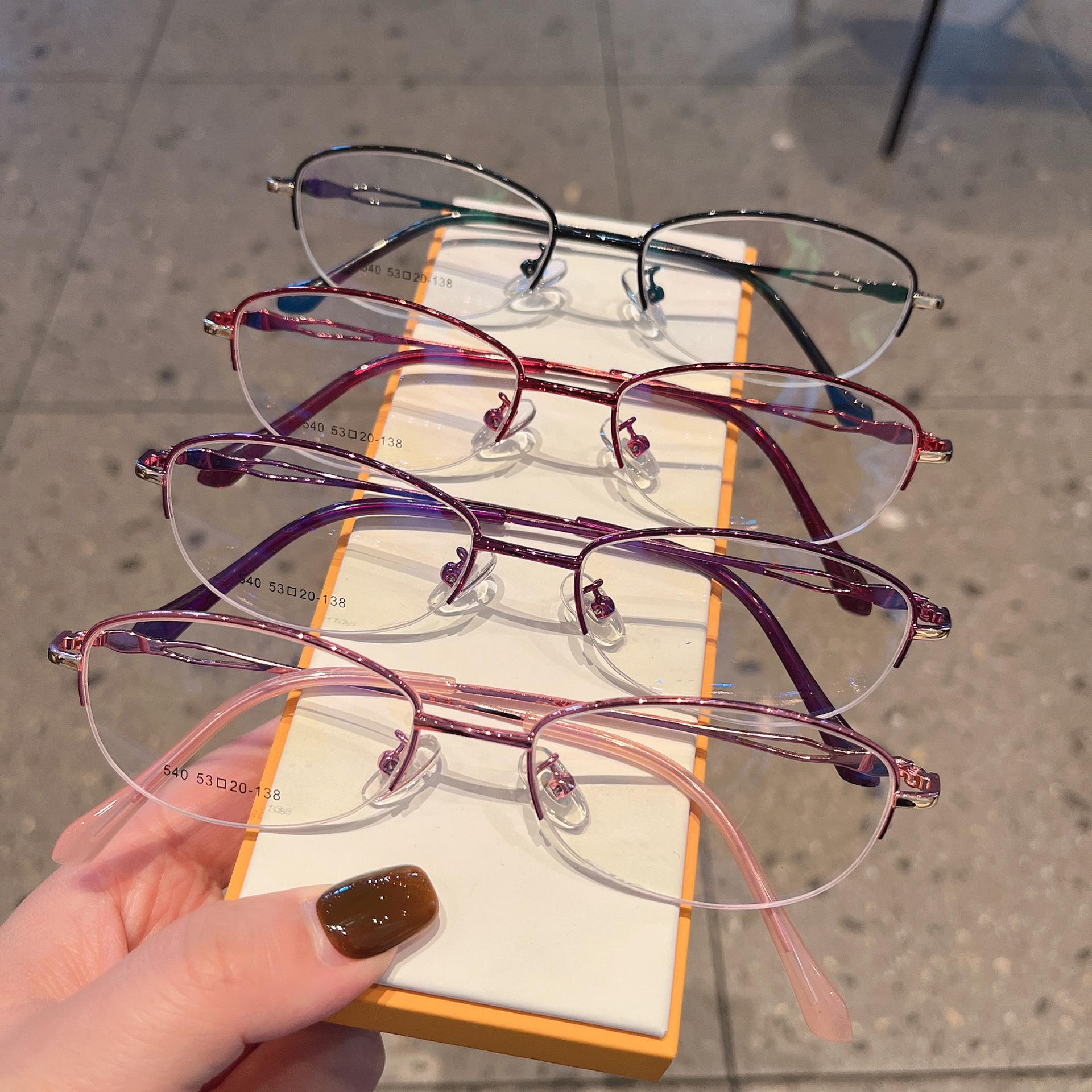 Compra 53 aleación de titanio tradicional negocio medio aro para mujer miopía presbicia anteojos lente anti luz azul anteojos Danyang Oval al por mayor en Joom.pro