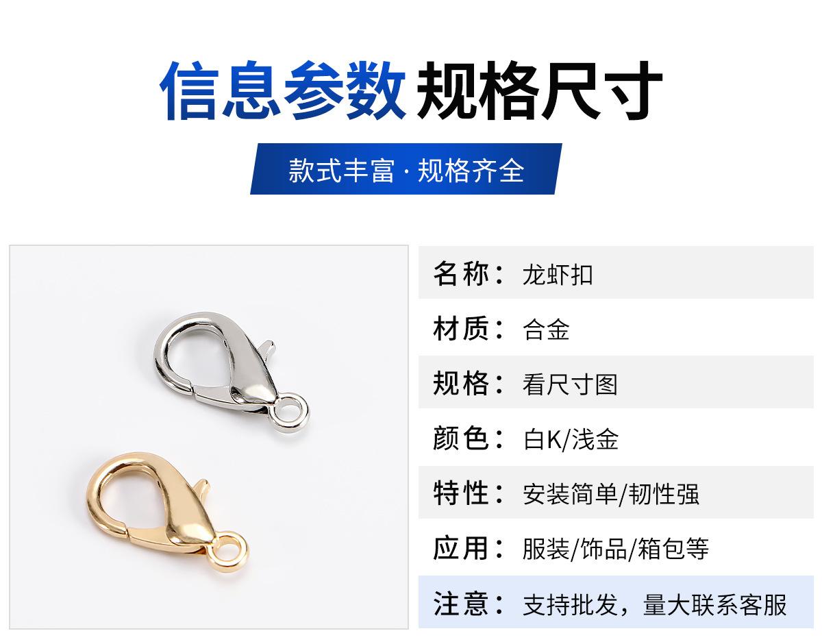 Accesorios de joyería de bricolaje hechos a mano, material de cuentas, aleación, hebilla de langosta, pulsera, hebilla de collar, disponible al por mayor