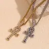Collar de joyería para hombre en stock al por mayor hip-hop europeo y americano con incrustaciones de diamantes de acero inoxidable colgante de cruz collar de joyería transfronteriza