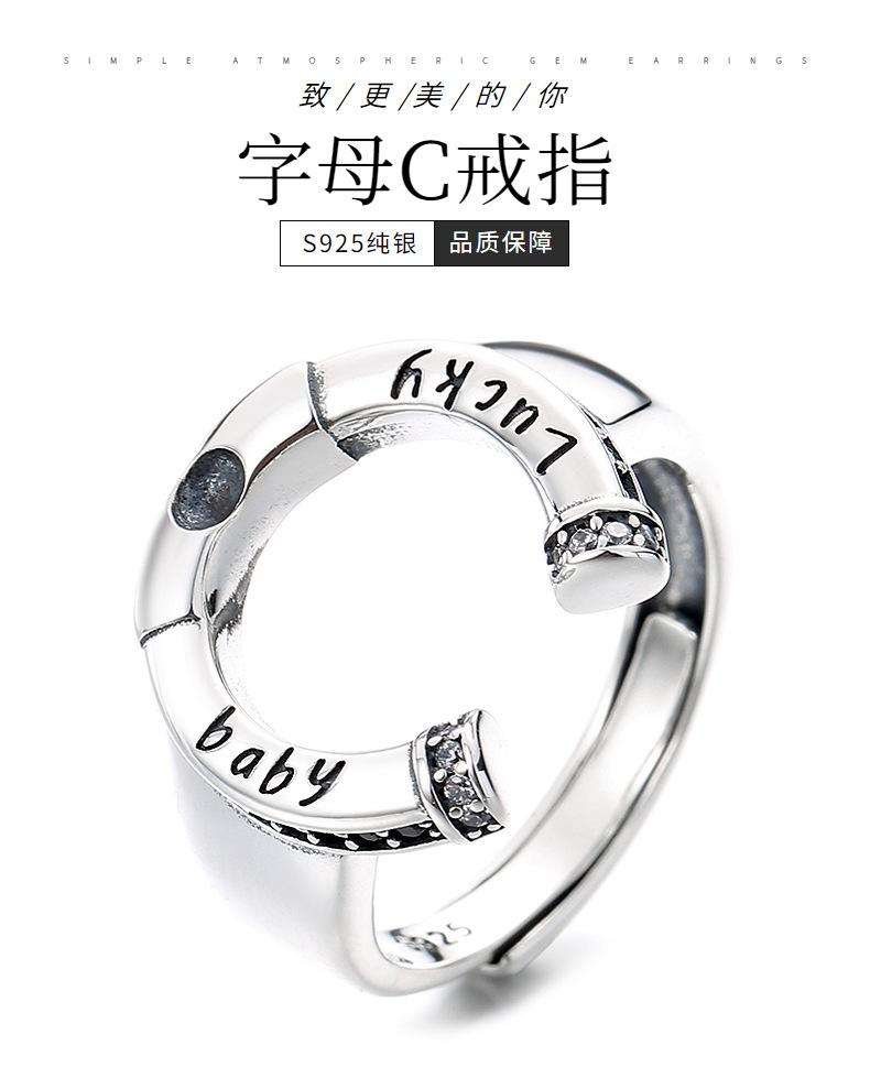 Compra Yunchaoxuan Plata S925 Moda Retro Letra C Diseño Creativo Punk Trendy Estilo Dulce Cool Anillo Abierto al por mayor en Joom.pro