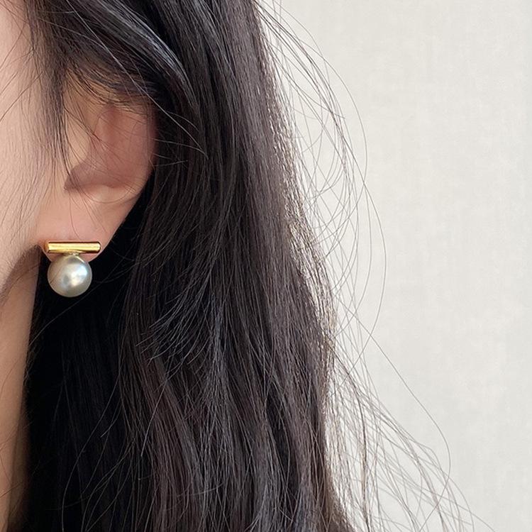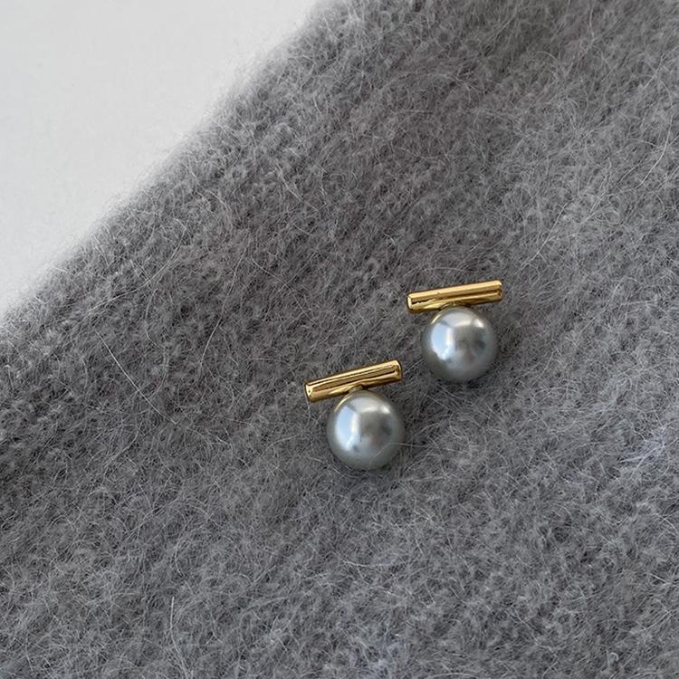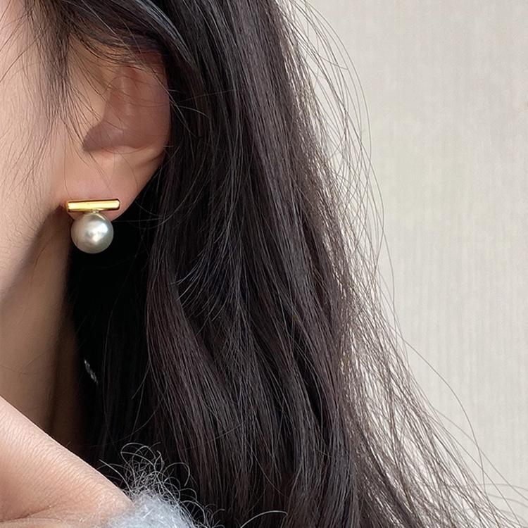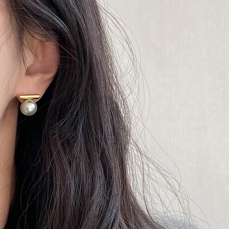Pendientes de perlas de metal de estilo frío para mujer, diseño de nicho, personalidad retro, sencillos, combinables y elegantes.