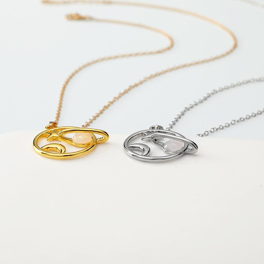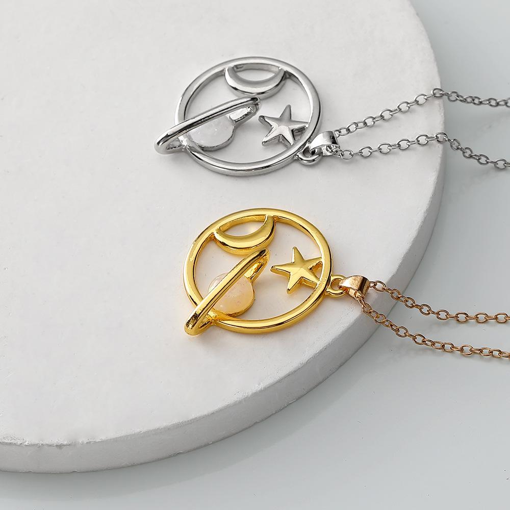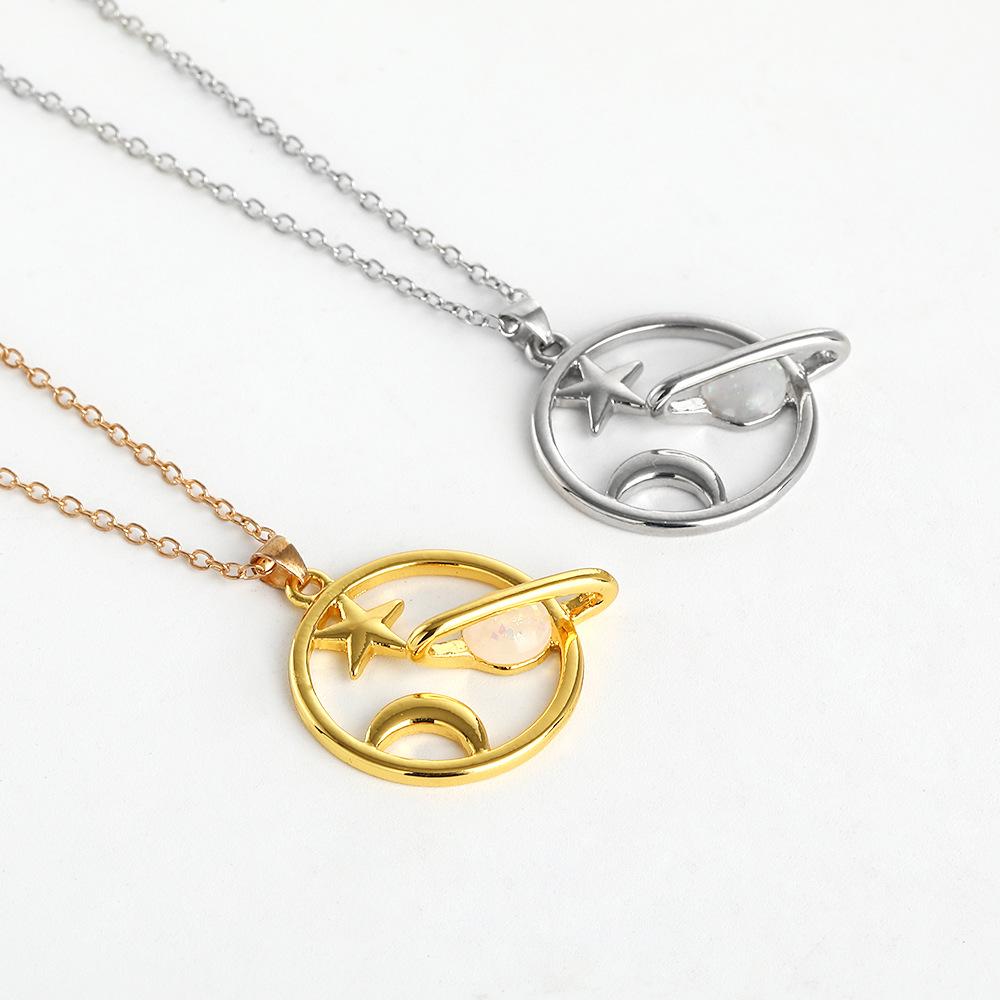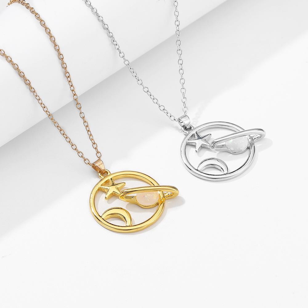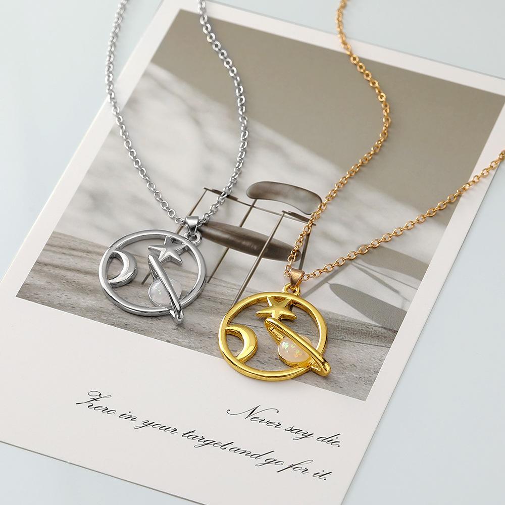 Collar con colgante de estrella, luna y sol de moda europea y americana, con costuras redondas, ideal como regalo para amigos, novias y parejas.