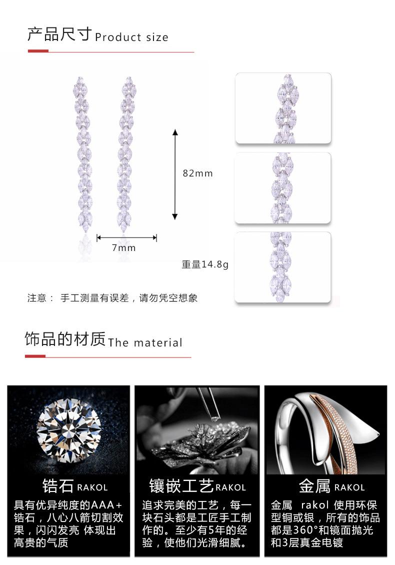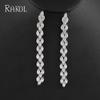 RAKOL - Pendientes largos con borlas elegantes, de lujo, personalizados, de estilo coreano, para mujer, diseño resistente, con incrustaciones completas de circonita 3A