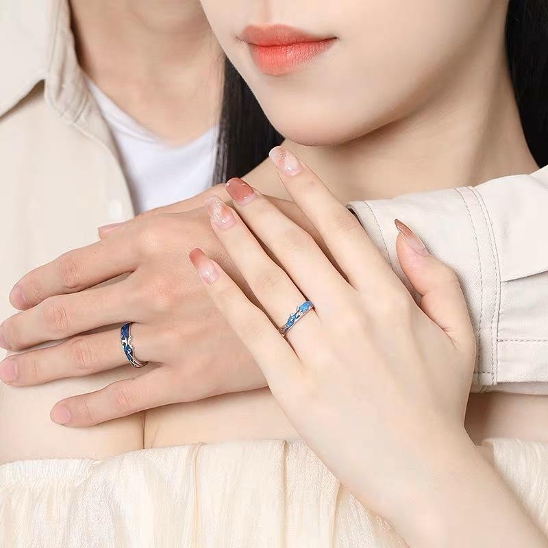 Anillo de pareja de El Principito y la Rosa con gel de caída y promesa de matrimonio y promesa para hombres y mujeres, regalo de San Valentín para amigos.