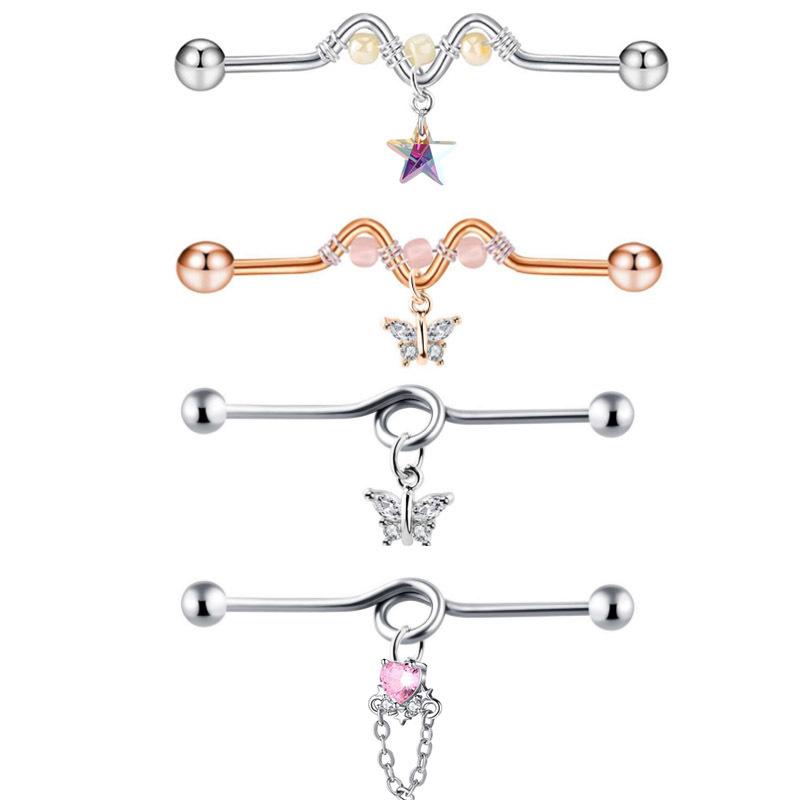 Piercing para oreja largo con forma de mariposa y circonita, venta al por mayor, disponible en Amazon, disponible transfronterizamente.