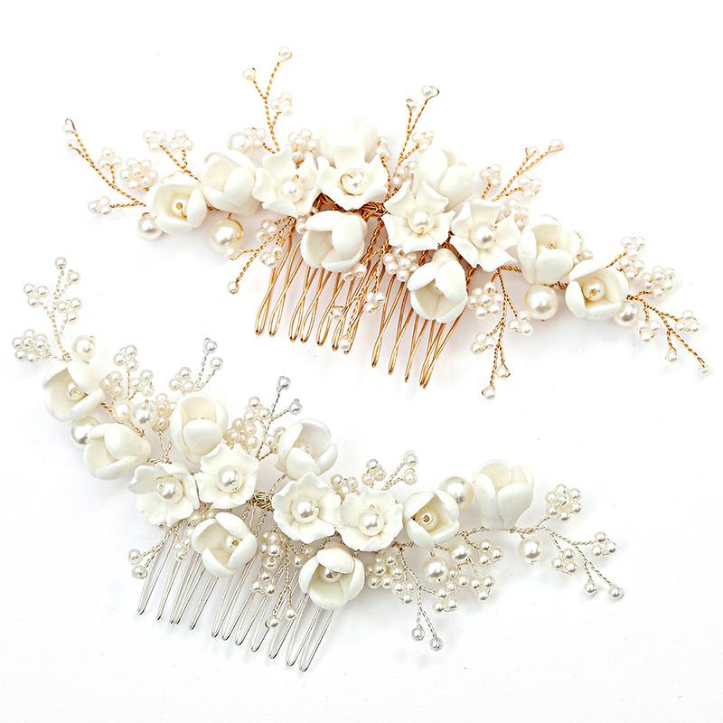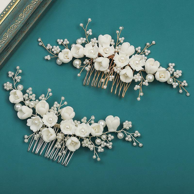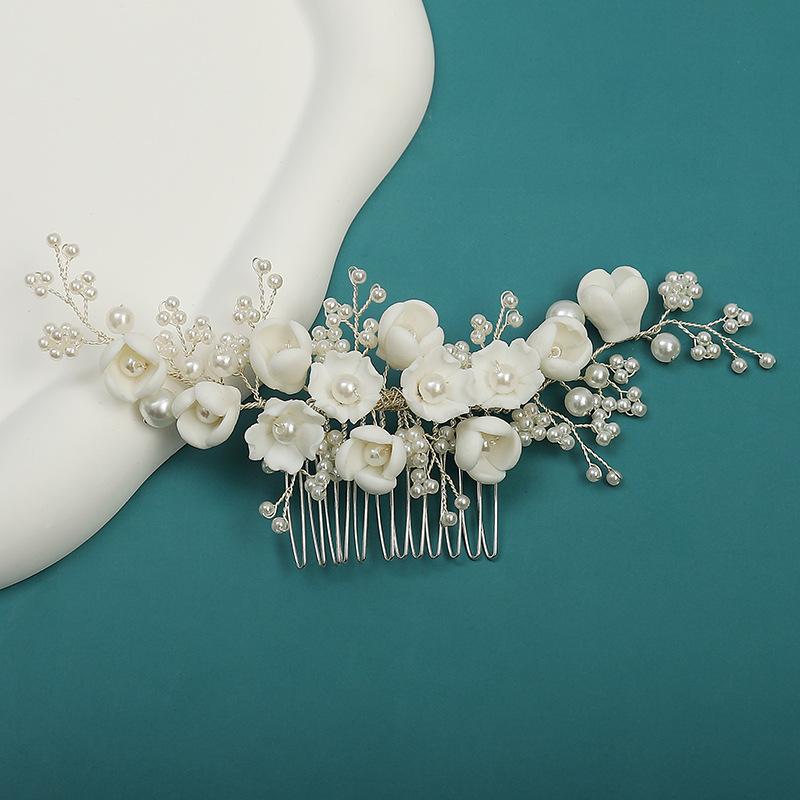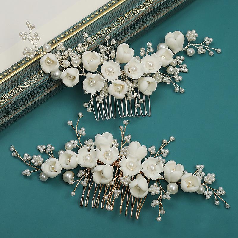 Peineta de flores de porcelana perlada para boda, tocado de novia hecho a mano, estilo antiguo, accesorios para el cabello Hanfu, venta al por mayor, novedad de 2023