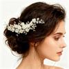 Tocado de novia con borde cruzado, peine con inserción de diamantes de imitación de perla, peine con inserción invertida hecho a mano, accesorios para el cabello con foto de estilo antiguo, peineta de cristal