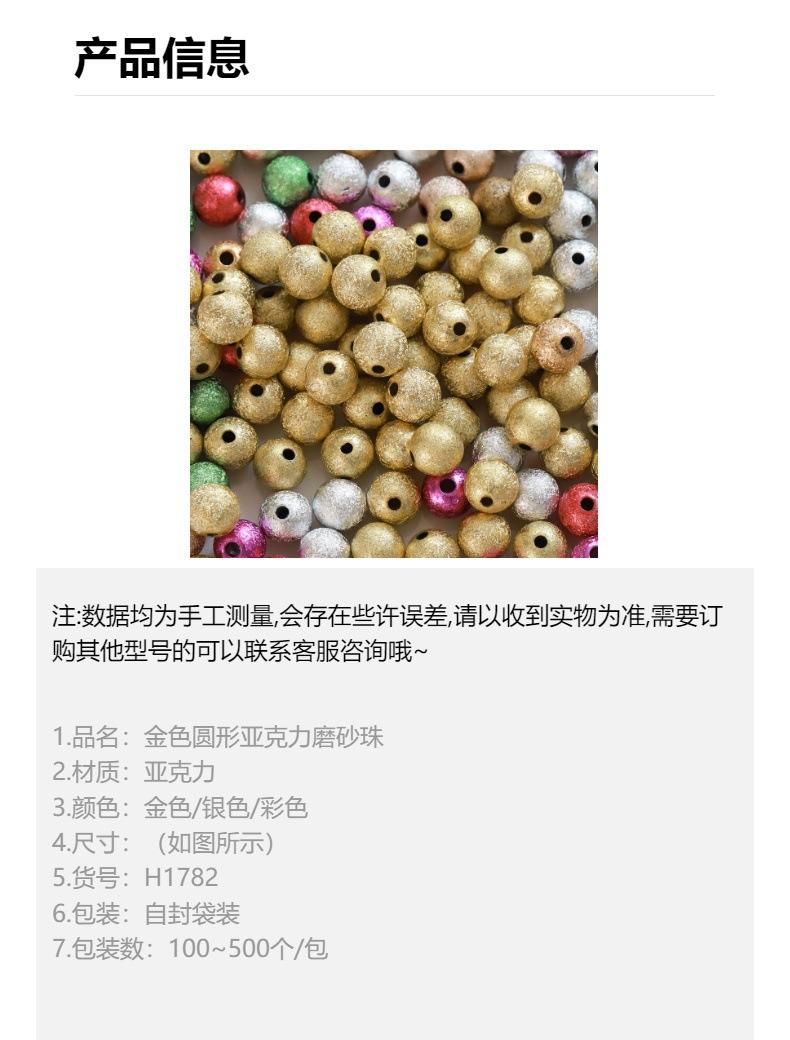 Cuentas acrílicas redondas doradas esmeriladas, cuentas espaciadoras para hacer collares, pulseras y accesorios de joyería.