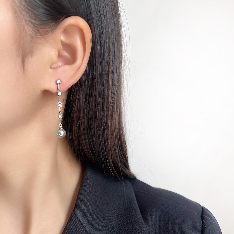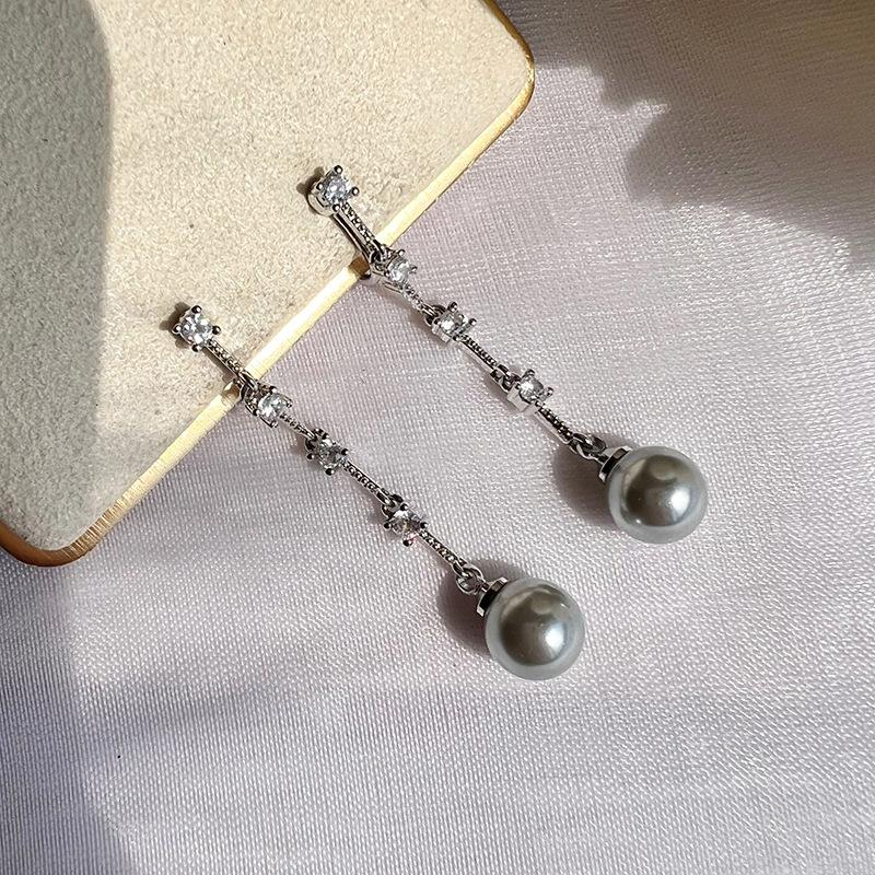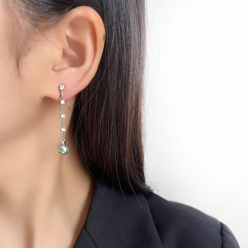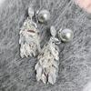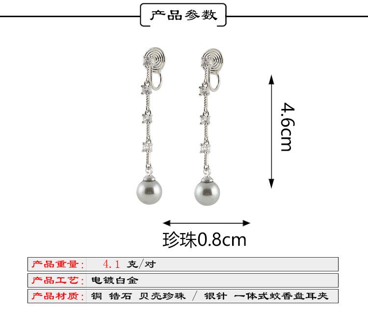 EH918 aretes simples de borla larga aretes de perla gris muestran la cara pequeños sin perforación hada espiral antimosquitos clip para la oreja