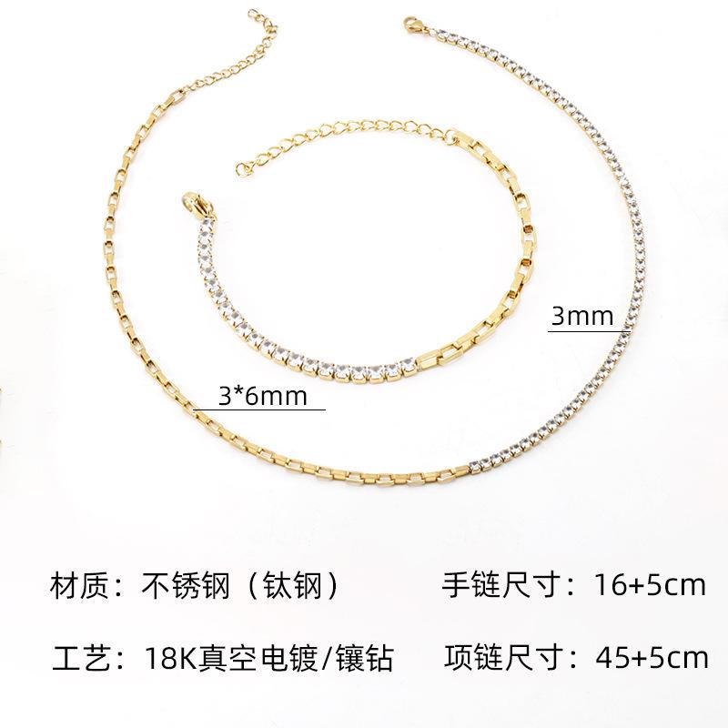 Collar de diamantes de acero inoxidable de moda europea y americana para mujer, diseño de nicho, sentido del diseño, oro de 18 quilates, acero de titanio, cadena de caja, pulsera, joyería
