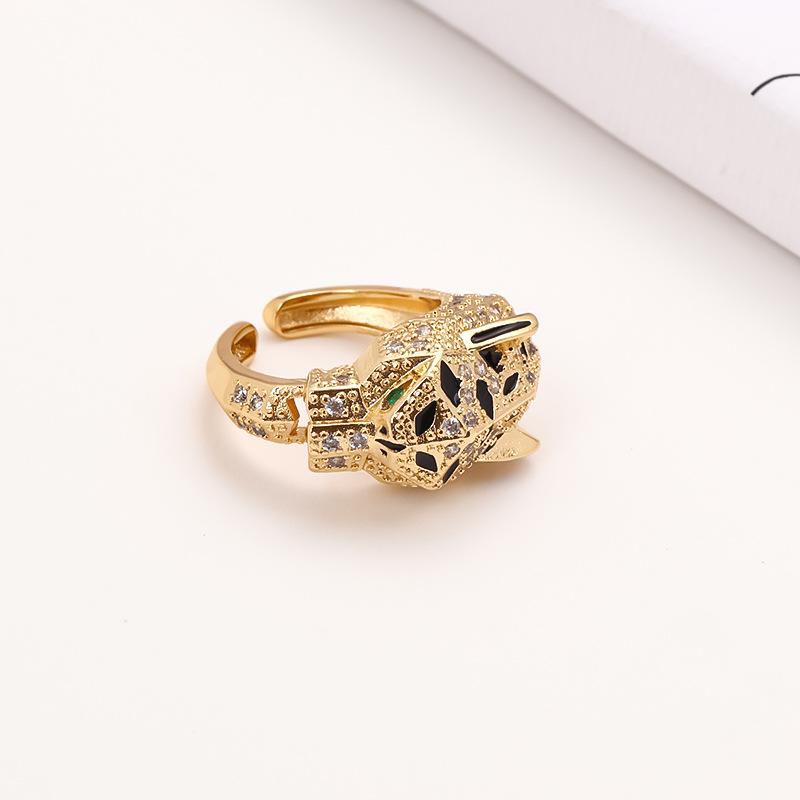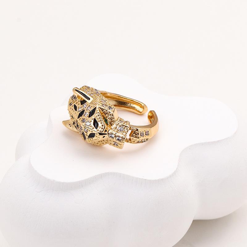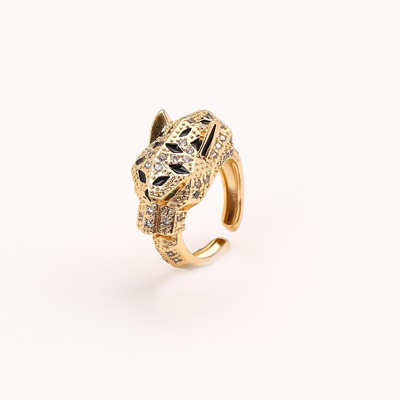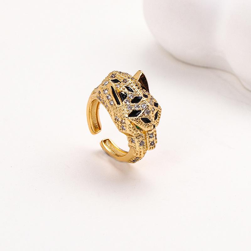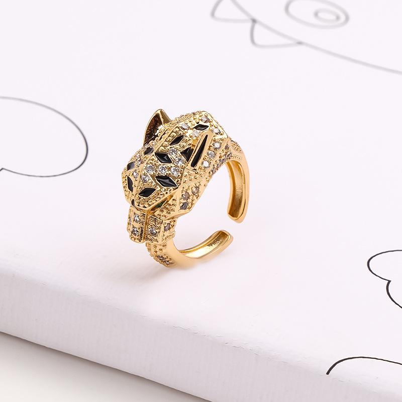 Anillo de cabeza de leopardo con incrustaciones de cobre, ligero y de lujo, con diseño de moda europeo y americano, anillo ajustable con apertura de moda.