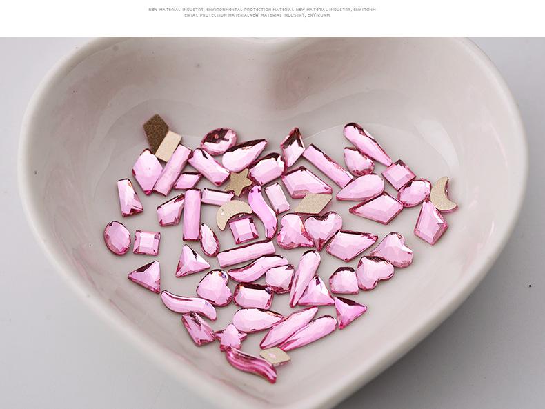 Polvo de luz roja de internet taladro para uñas de fondo plano taladro de vidrio k9 taladro de forma especial joyería para uñas de color mágico mezclado con taladro A doméstico 20