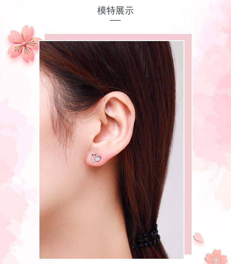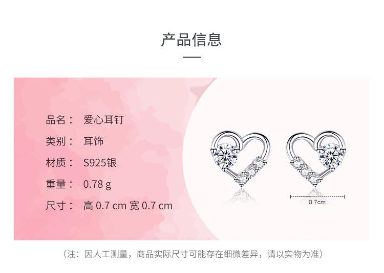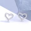 Pendientes de plata de ley s925 estilo japonés-coreano para mujer, pequeños, frescos y exquisitos, con forma de corazón de diamantes.