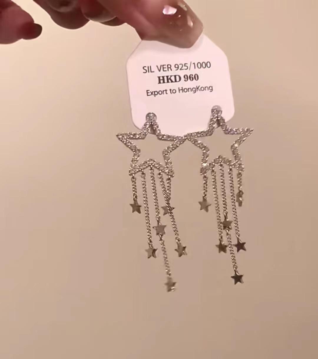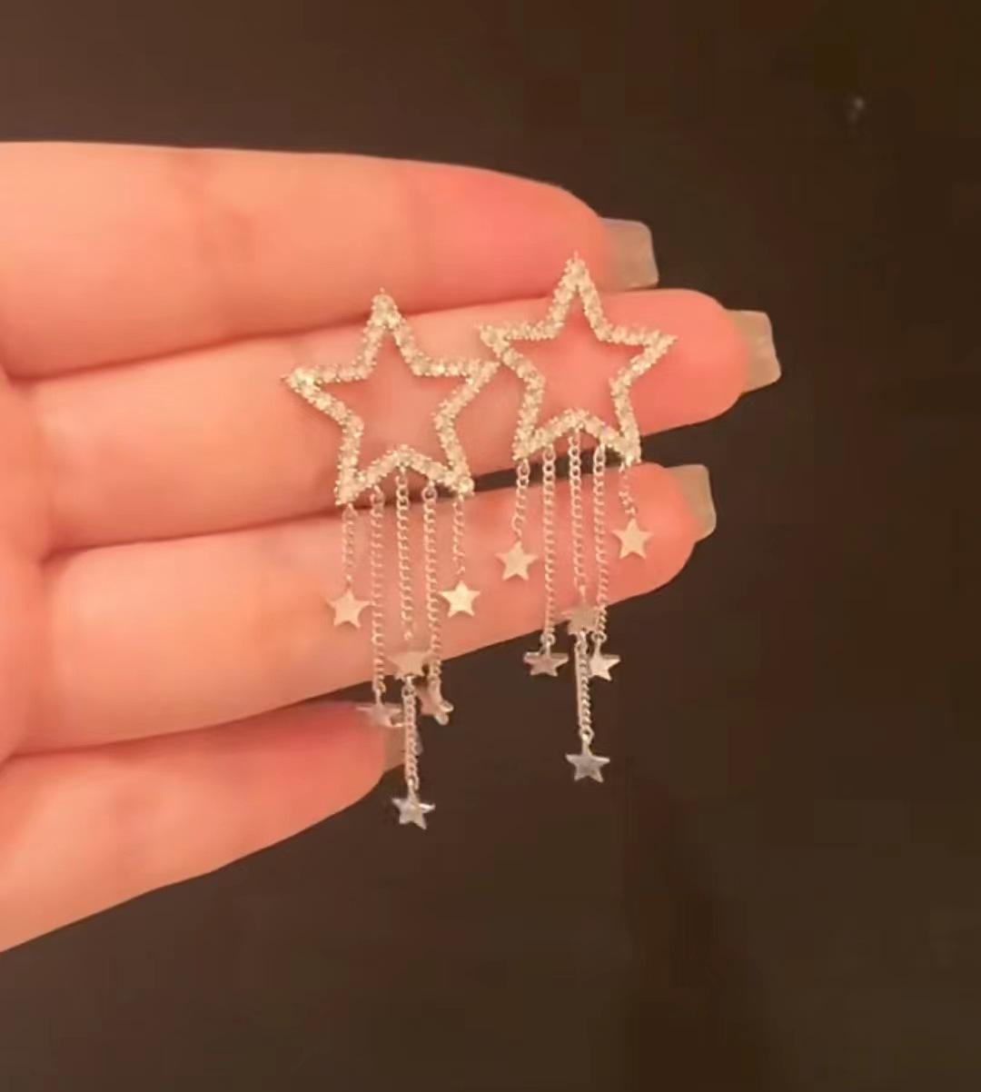 Compra 2024 Nuevos pendientes de borla de estrella de cinco puntas hueca, diseño de nicho largo, pendientes de lujo ligeros y elegantes que combinan con todo. al por mayor en Joom.pro
