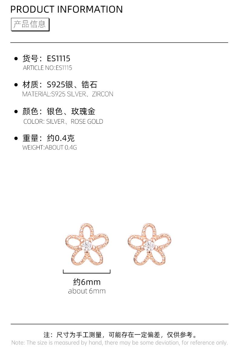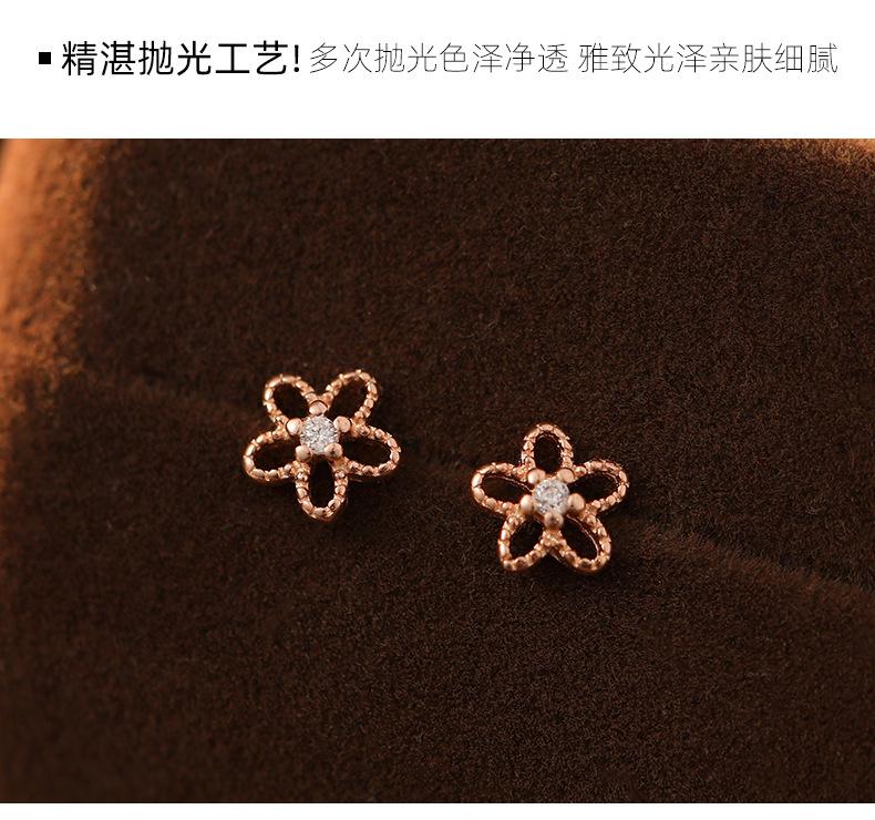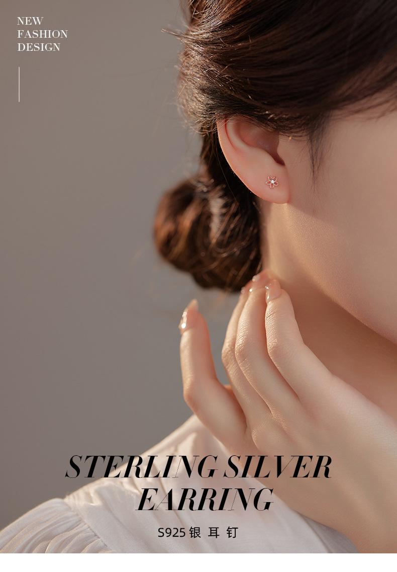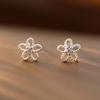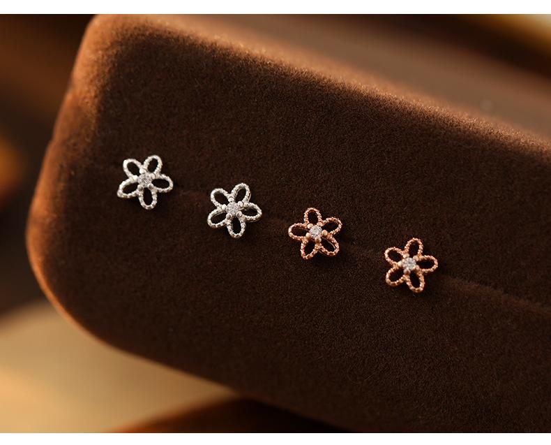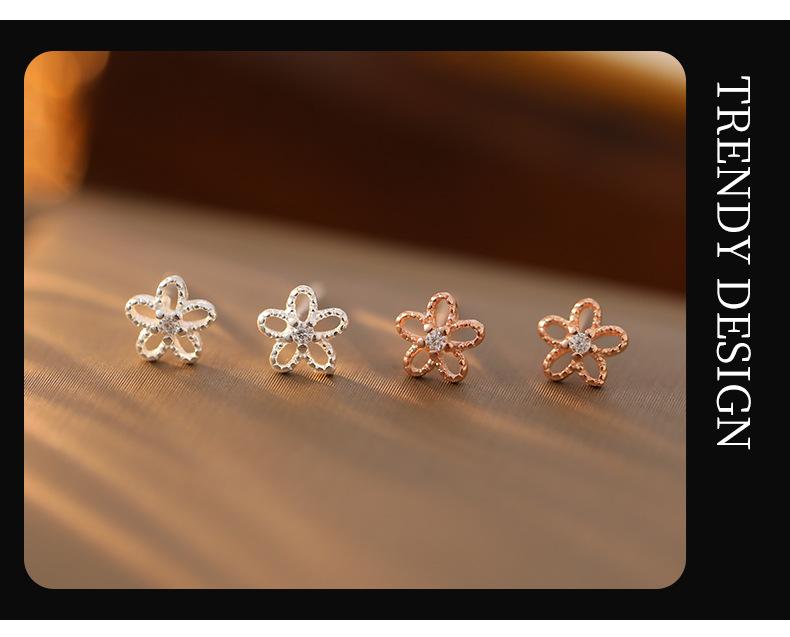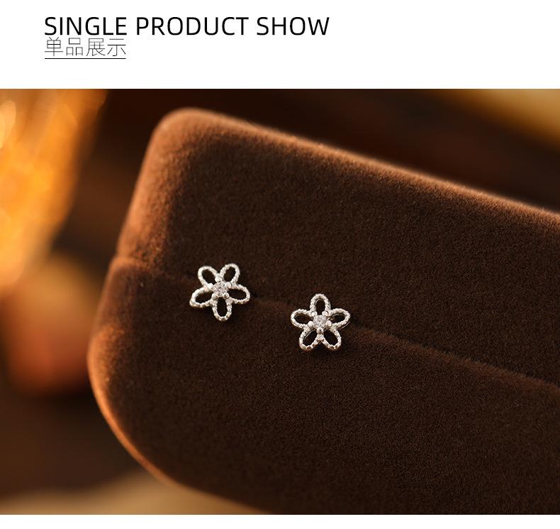 Pendientes de plata de ley 925 con forma de flor hueca para mujer, estilo coreano, exquisitos y elegantes pendientes de circonita, mini pendientes diarios.