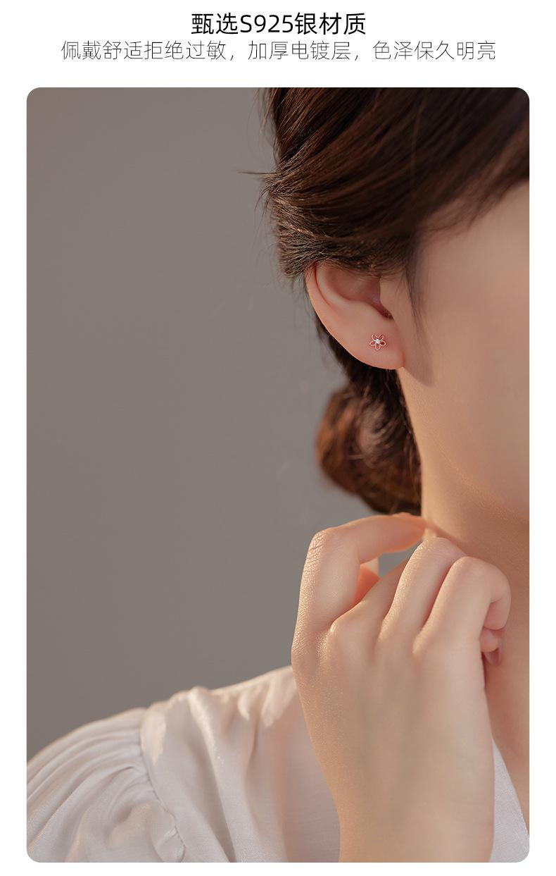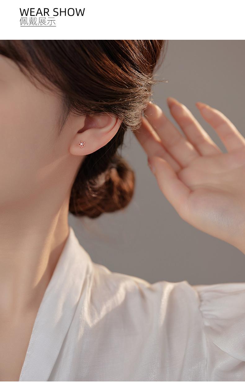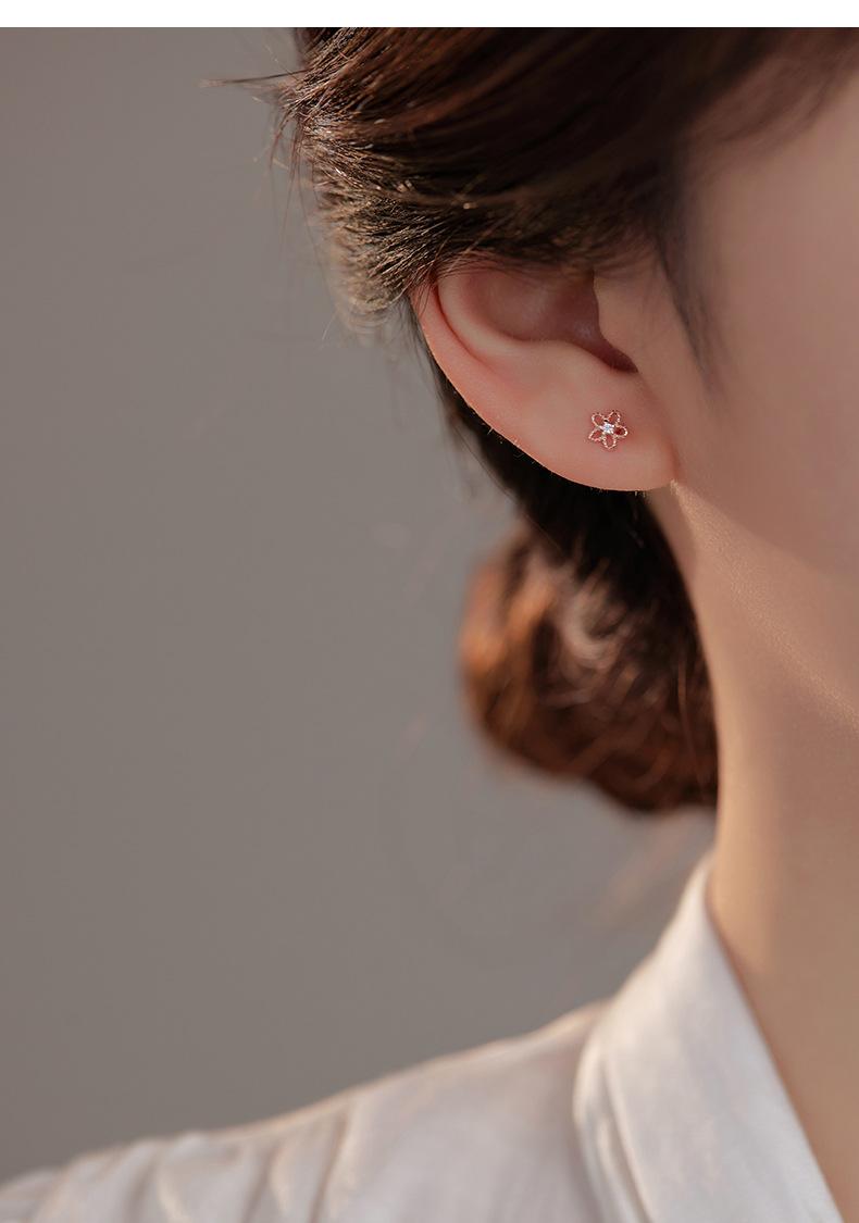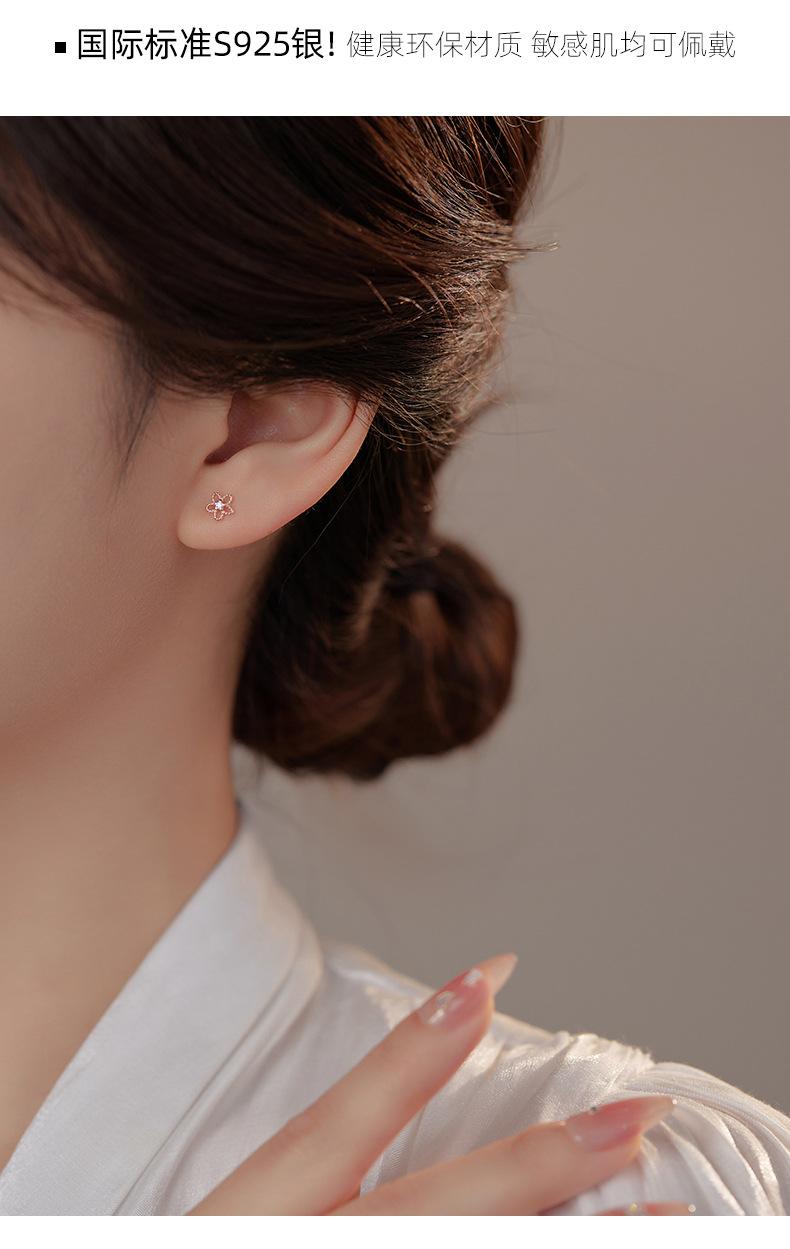 Pendientes de plata de ley 925 con forma de flor hueca para mujer, estilo coreano, exquisitos y elegantes pendientes de circonita, mini pendientes diarios.