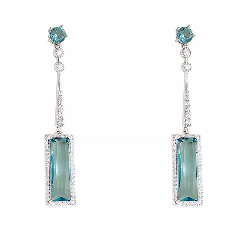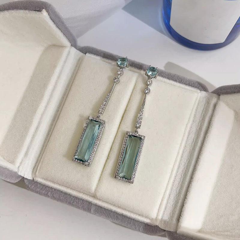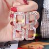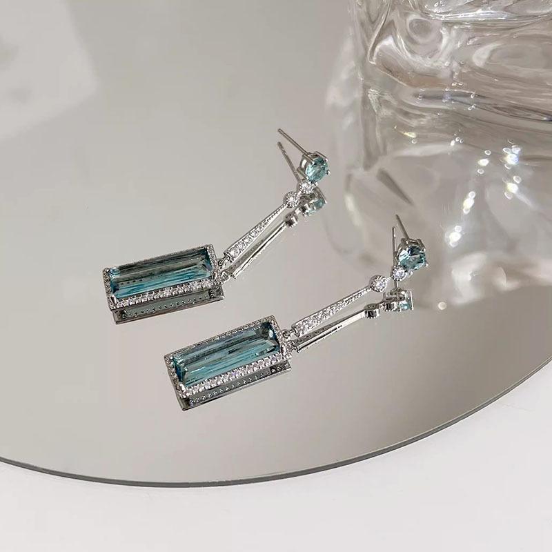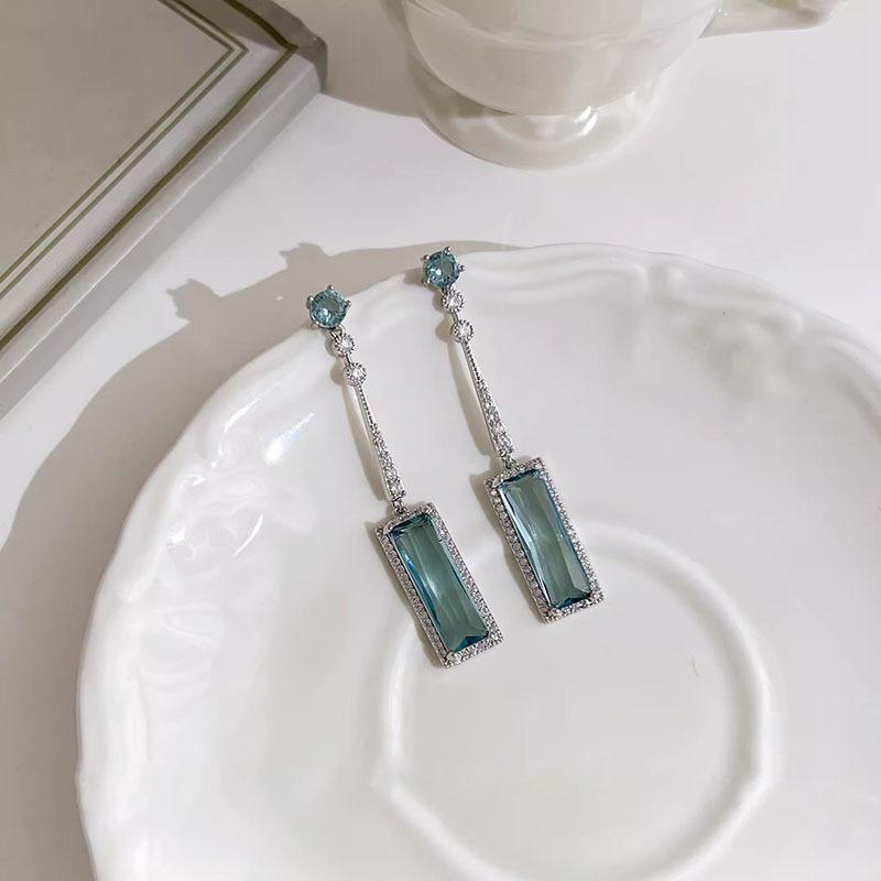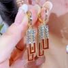 Pendientes de borla de cristal con diamantes de Corea del Sur, diseño de nicho rectangular, pendientes de lujo ligeros de alta calidad con temperamento de celebridades de Internet.